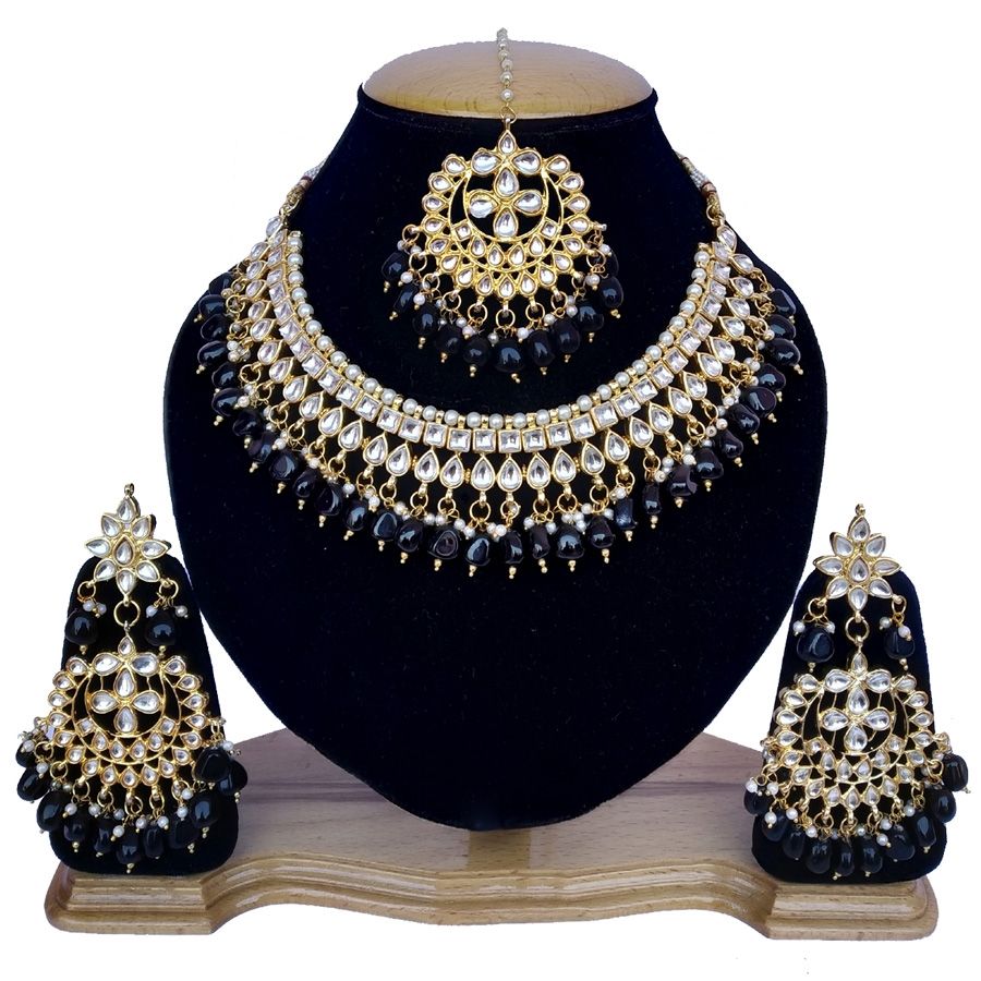 Gold Rodium Polish White and Off White Necklace in Metal Alloy with Kundan