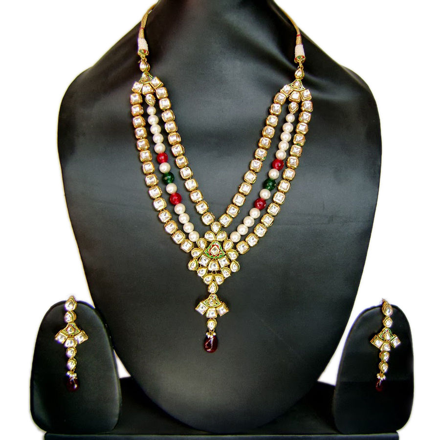 Gold Rodium Polish Gold Necklace in Metal Alloy with Kundan