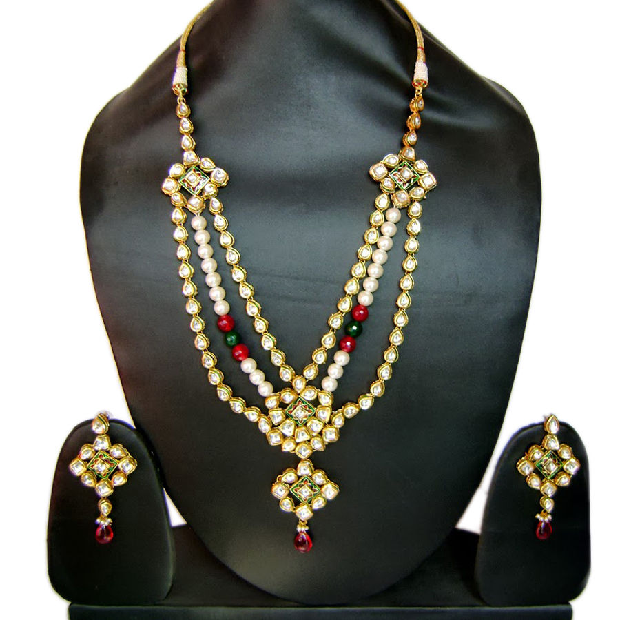 Gold Rodium Polish Gold Necklace in Metal Alloy with Kundan