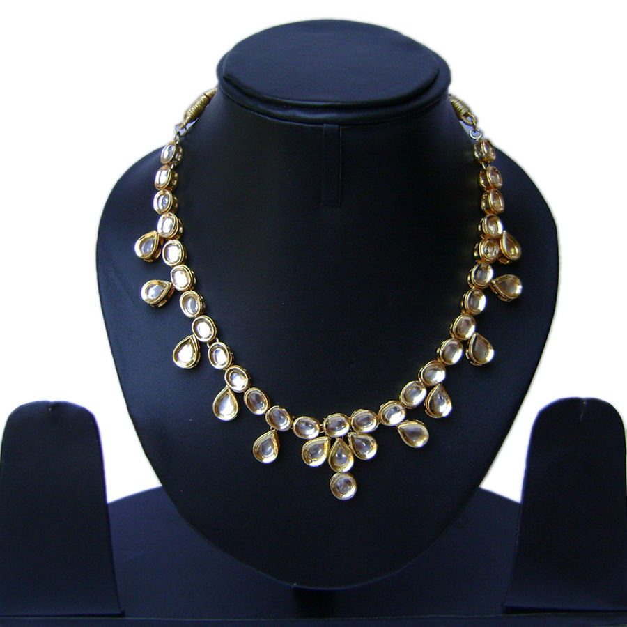 Handcrafted base metal alloy high quality Gold Plated with studed Real Kundan Stone