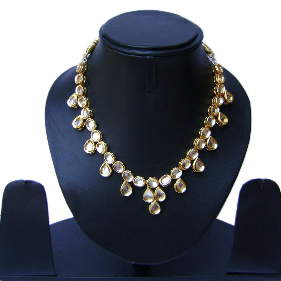 Handcrafted base metal alloy high quality Gold Plated with studed Real Kundan Stone