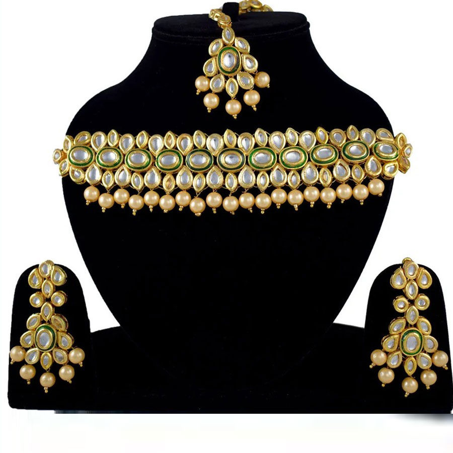 Gold Rodium Polish White and Off White Necklace in Metal Alloy with Kundan