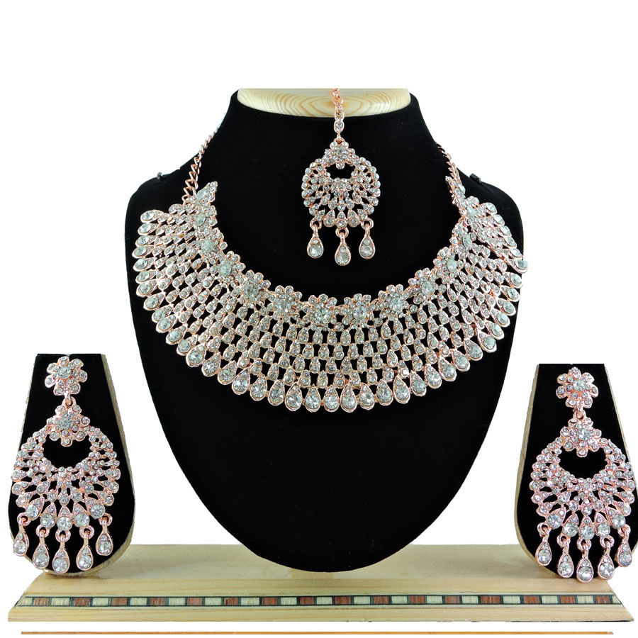 Gold Rodium Polish White and Off White color Necklace in Metal Alloy studded with CZ Diamond