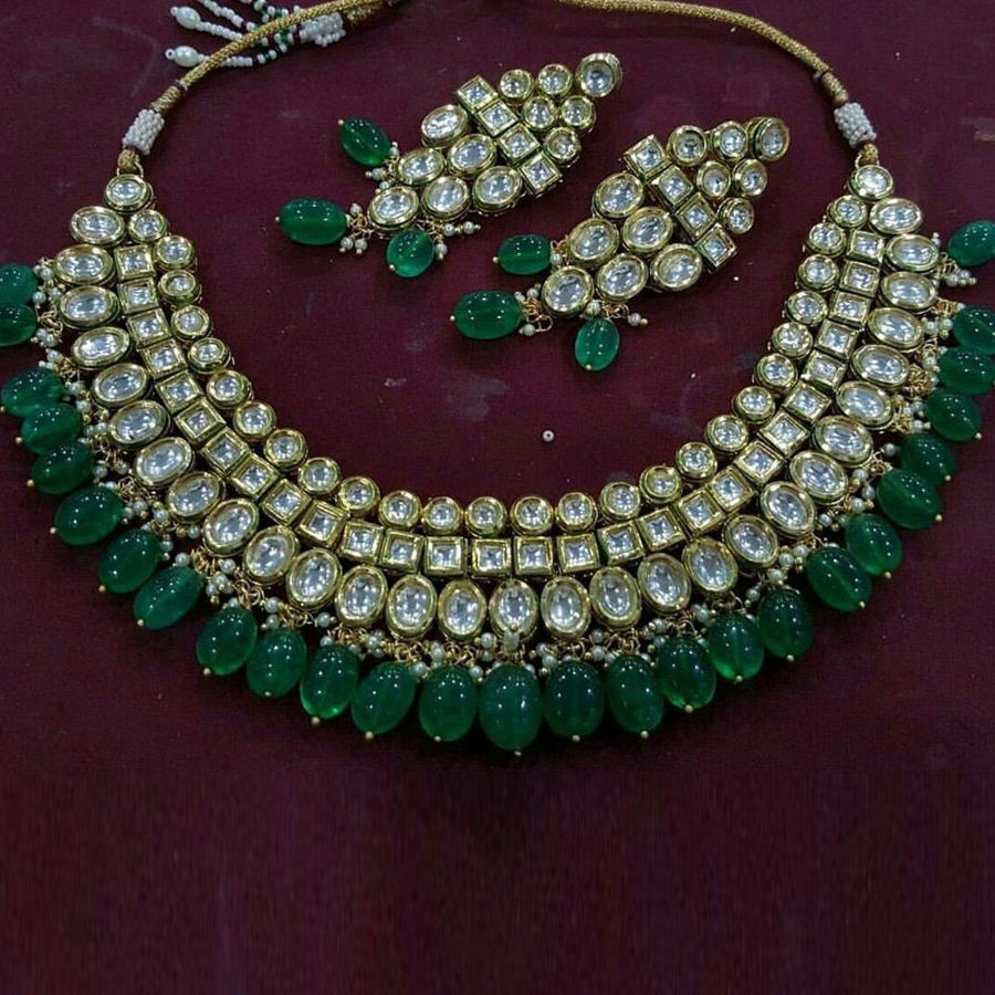 Gold Rodium Polish Green Necklace in Metal Alloy with Kundan