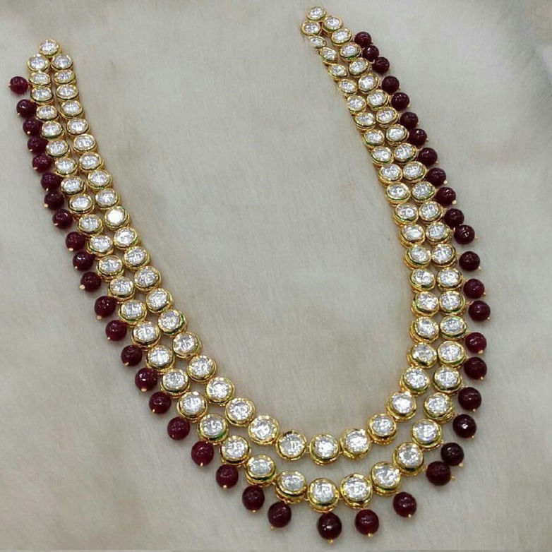 Gold Rodium Polish Red and Maroon, White and Off White color Necklace in Metal Alloy studded with Kundan