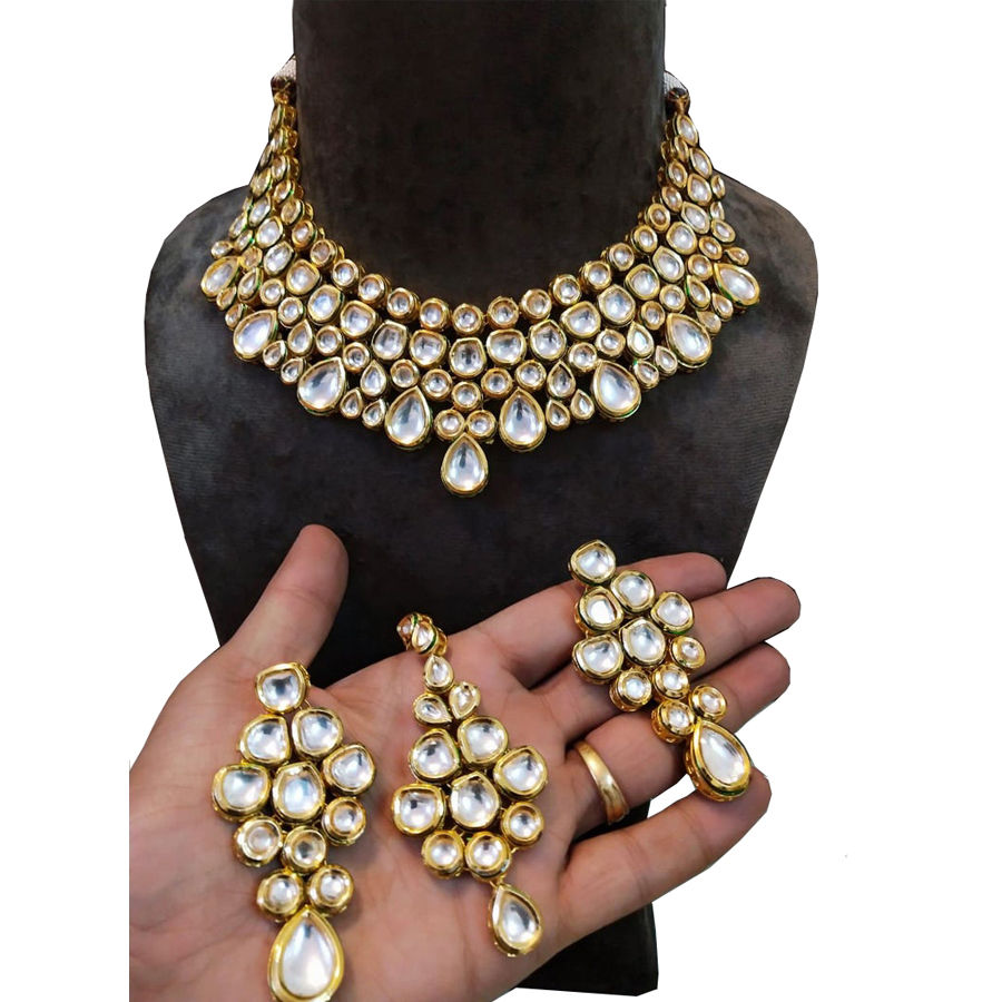 Gold Rodium Polish Green Necklace in Metal Alloy with Kundan