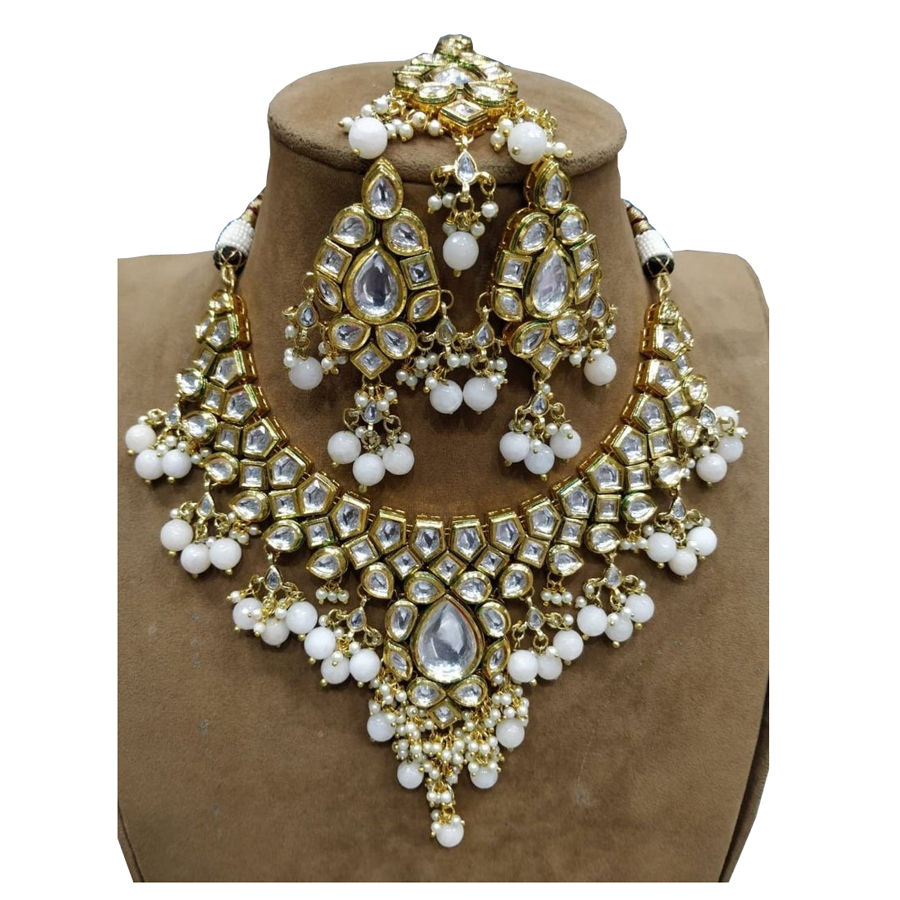 Gold Rodium Polish White and Off White Necklace in Metal Alloy with Kundan