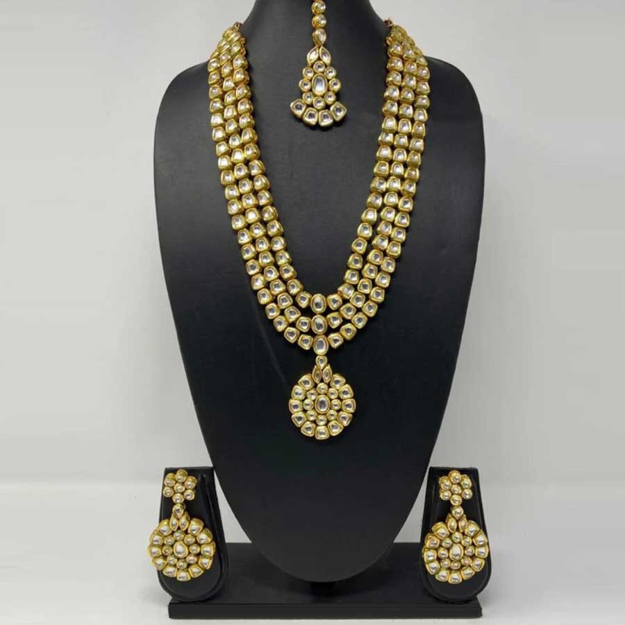 Gold Rodium Polish Green Necklace in Metal Alloy with Kundan