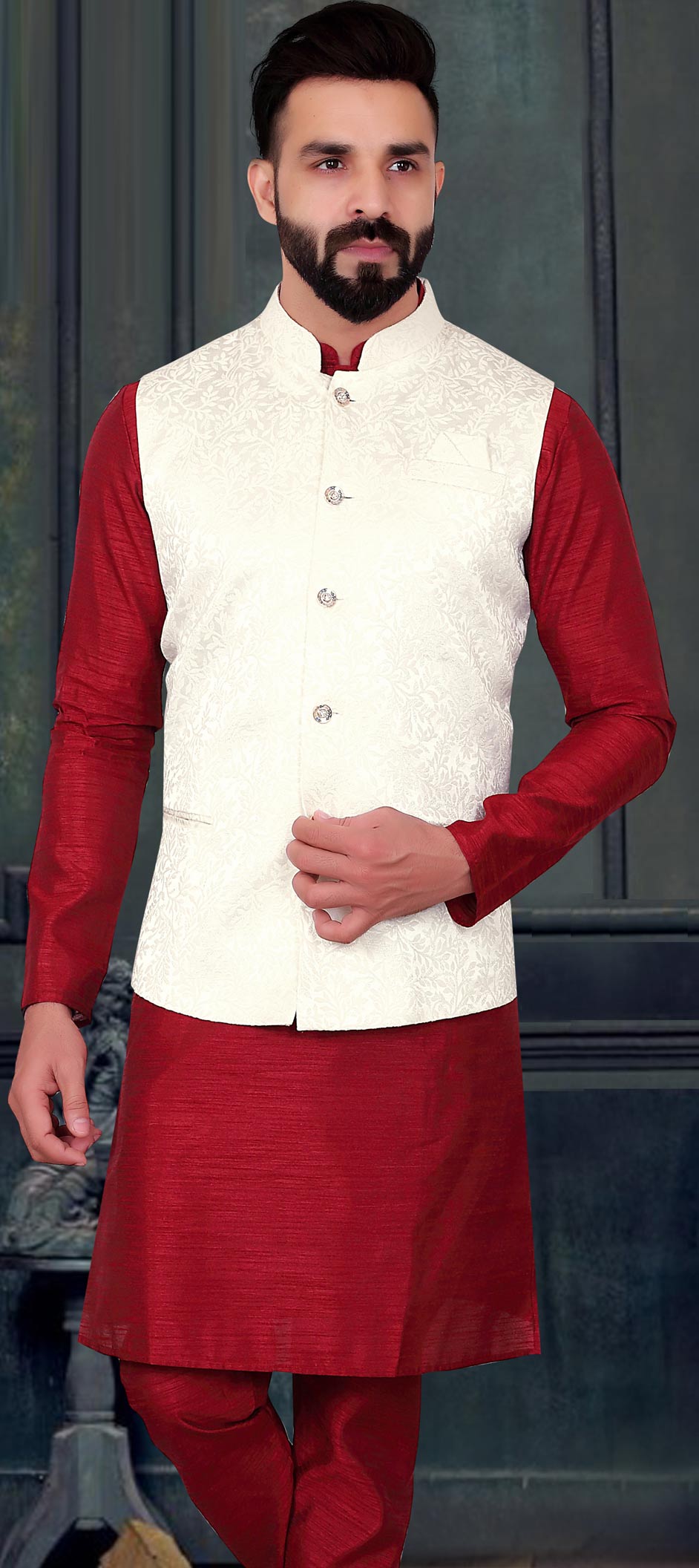 White and Off White color Nehru Jacket in Jacquard fabric with Weaving work