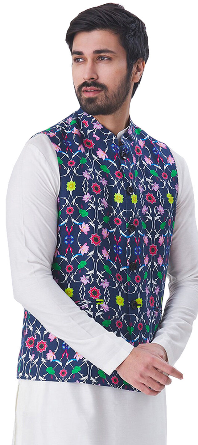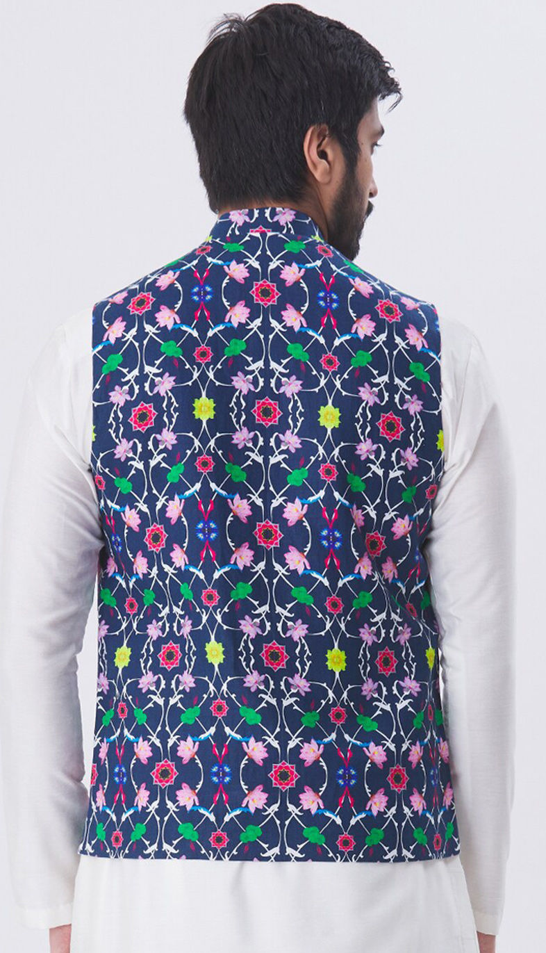 Multicolor color Nehru Jacket in Satin Silk fabric with Printed work