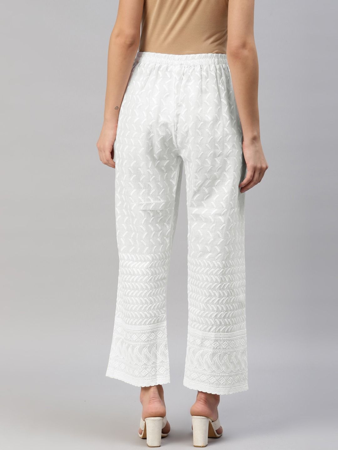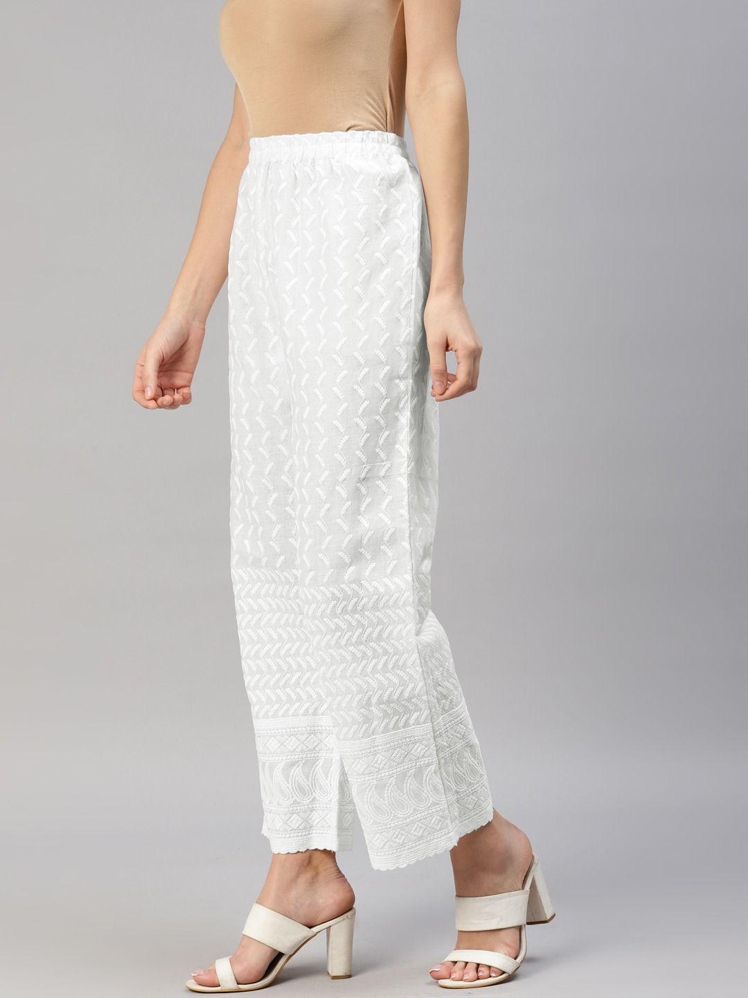 White and Off White color Palazzo in Cotton fabric with Embroidered, Resham, Thread work