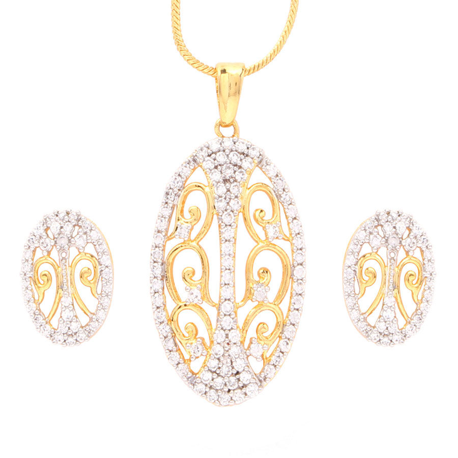 Gold and Silver Rodium Polish Gold and Silver color Pendant in Metal Alloy studded with CZ Diamond