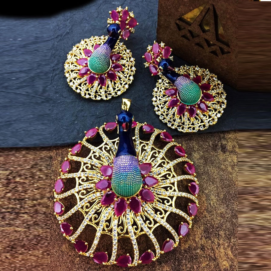 Gold Rodium Polish Multicolor color Pendant in Metal Alloy studded with Beads, CZ Diamond