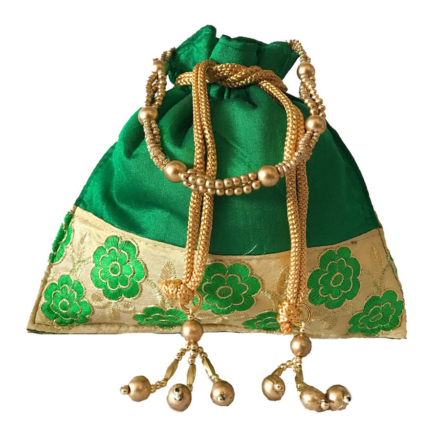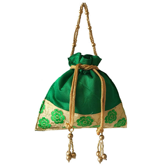 Green color Potli in Art Silk fabric with Embroidered, Stone, Thread work