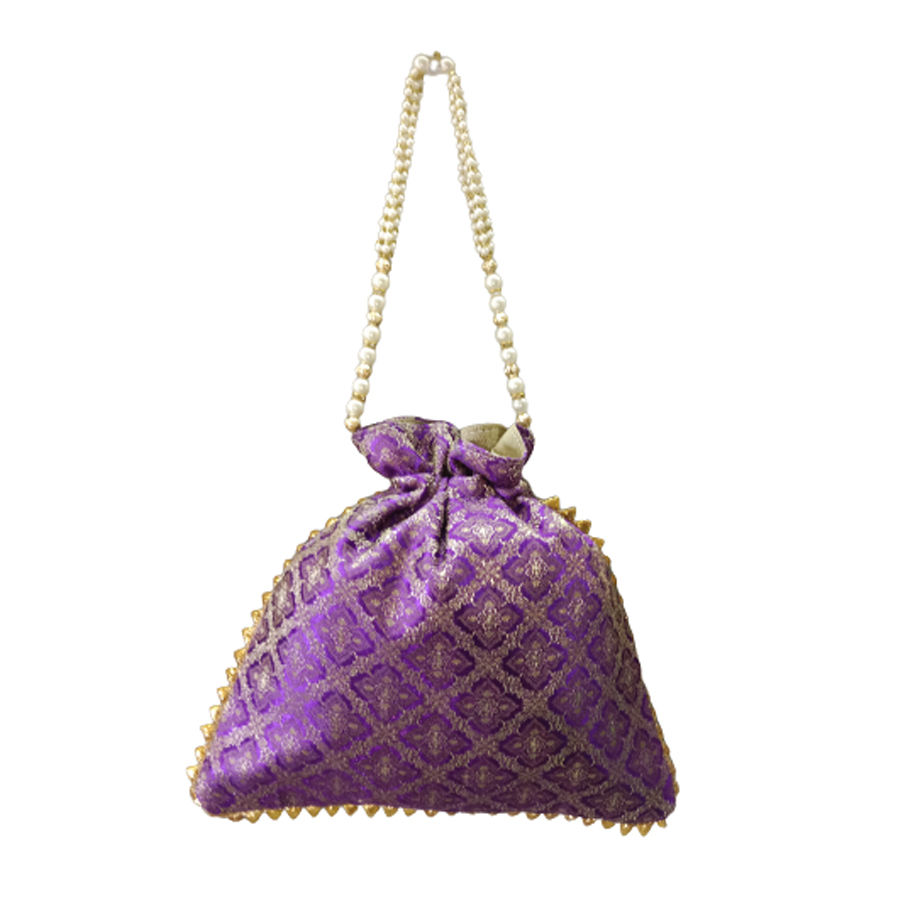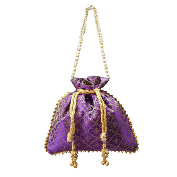 Purple and Violet color Potli in Raw Silk fabric with Weaving work
