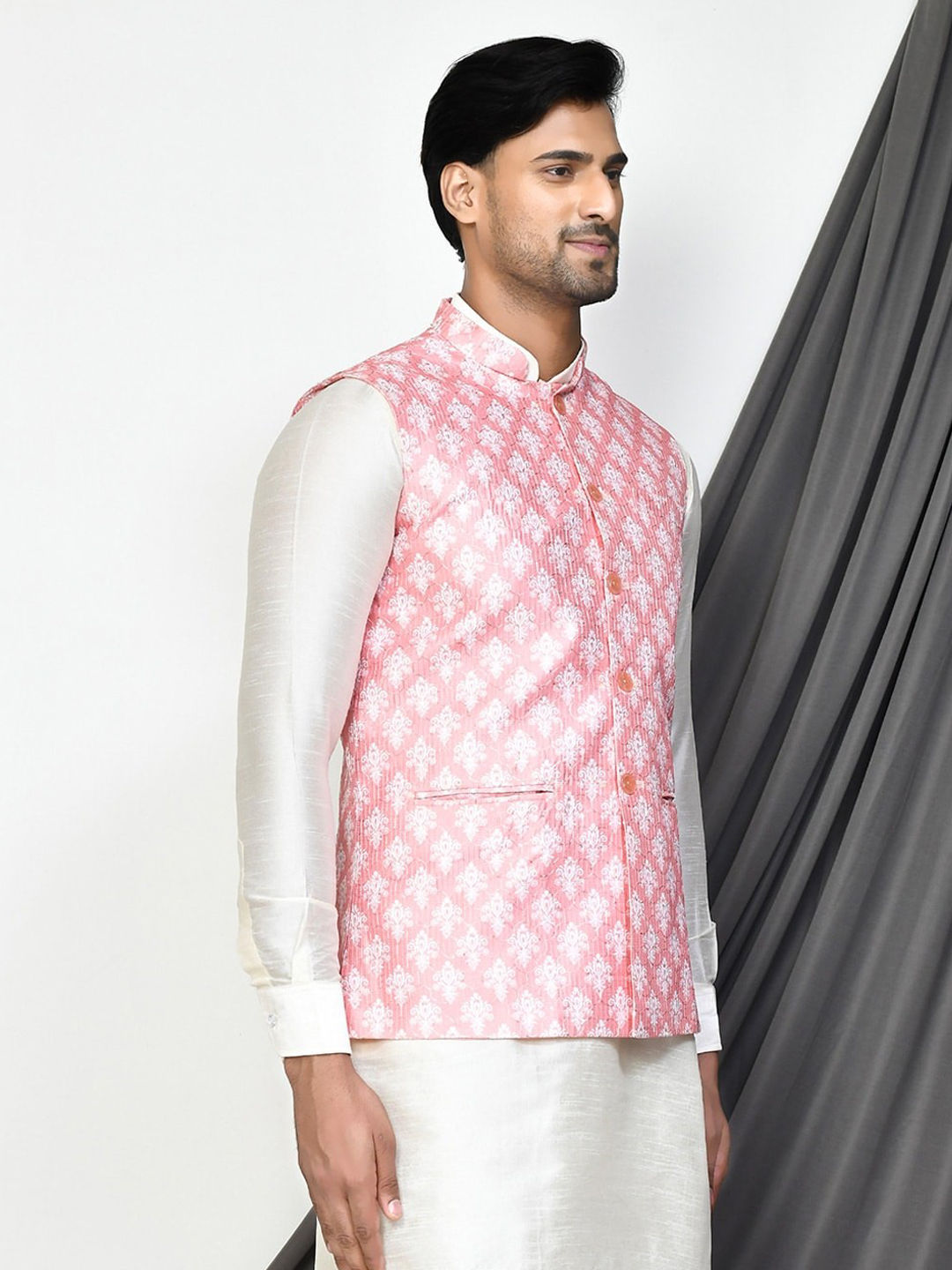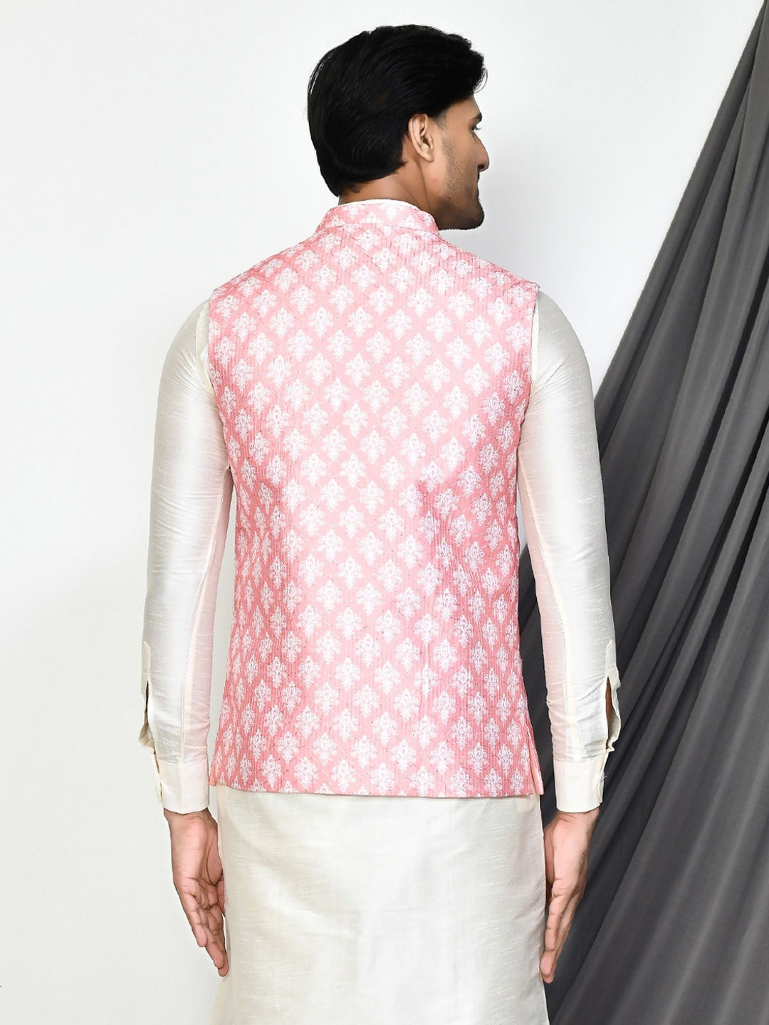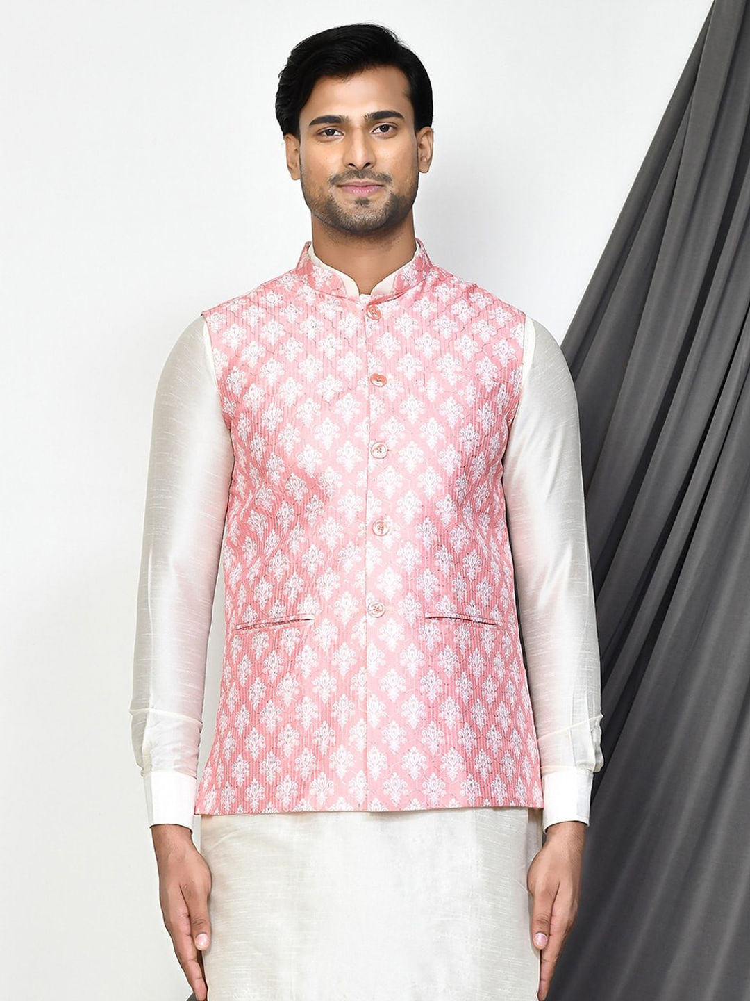 Art Dupion Silk Wedding Nehru Jacket in Pink and Majenta with Printed work