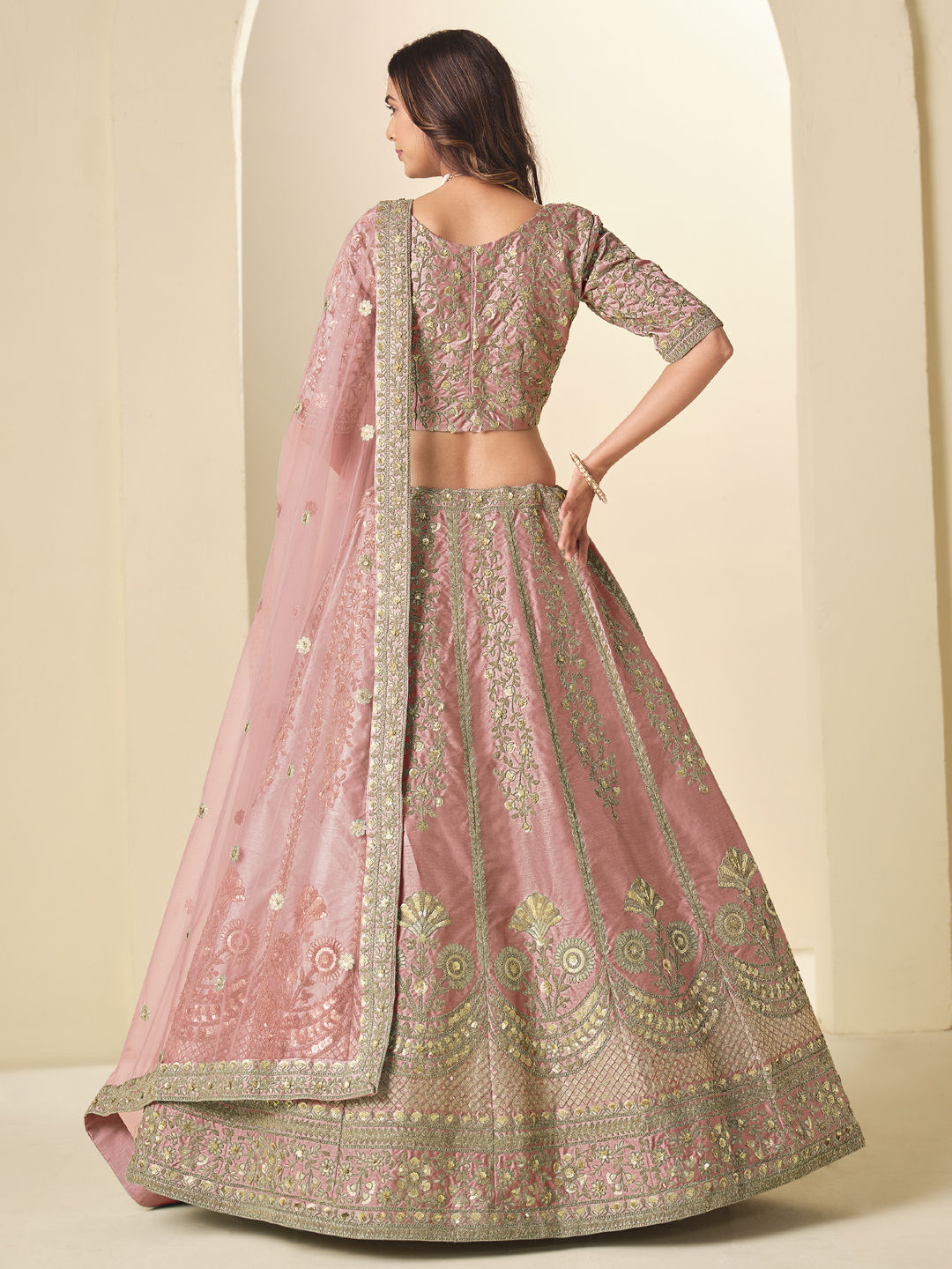Pink and Majenta color Lehenga in Art Silk fabric with Embroidered, Thread work