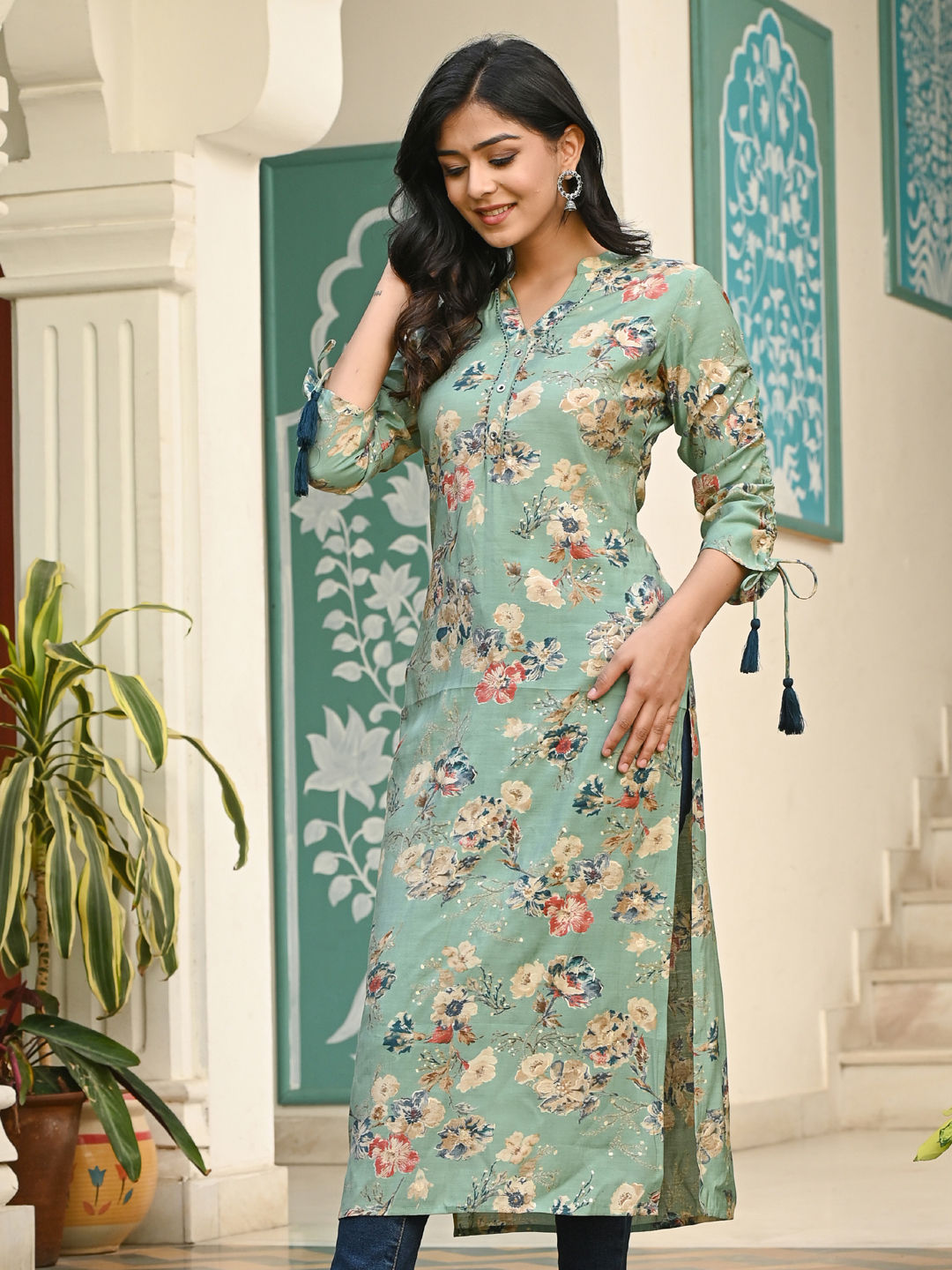 in Green with Floral work