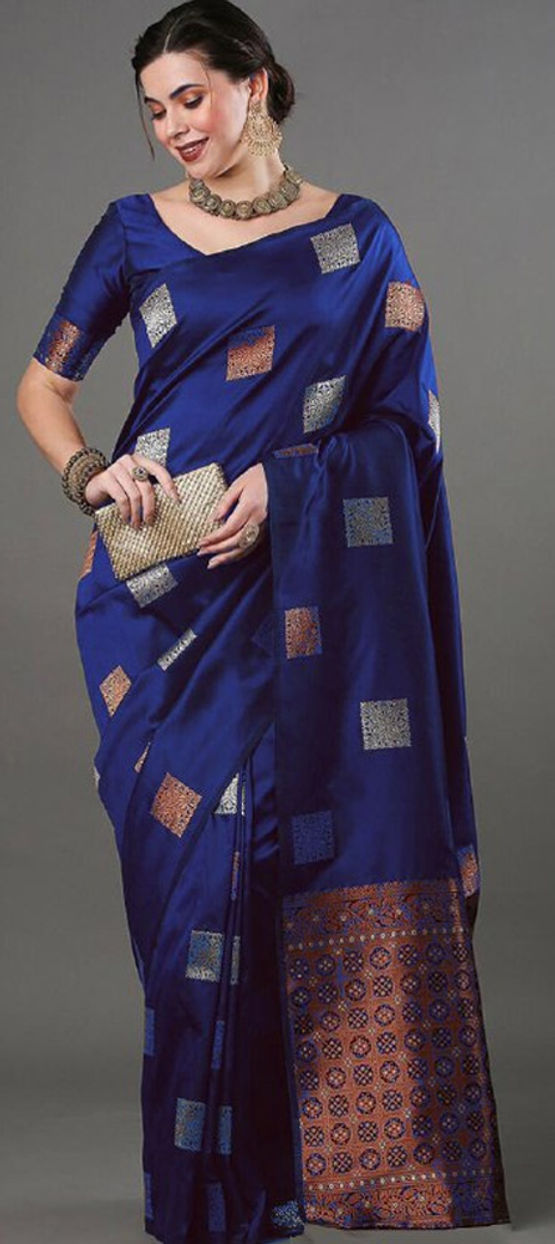 Blue color Saree in Art Silk, Silk fabric with Weaving, Zari work