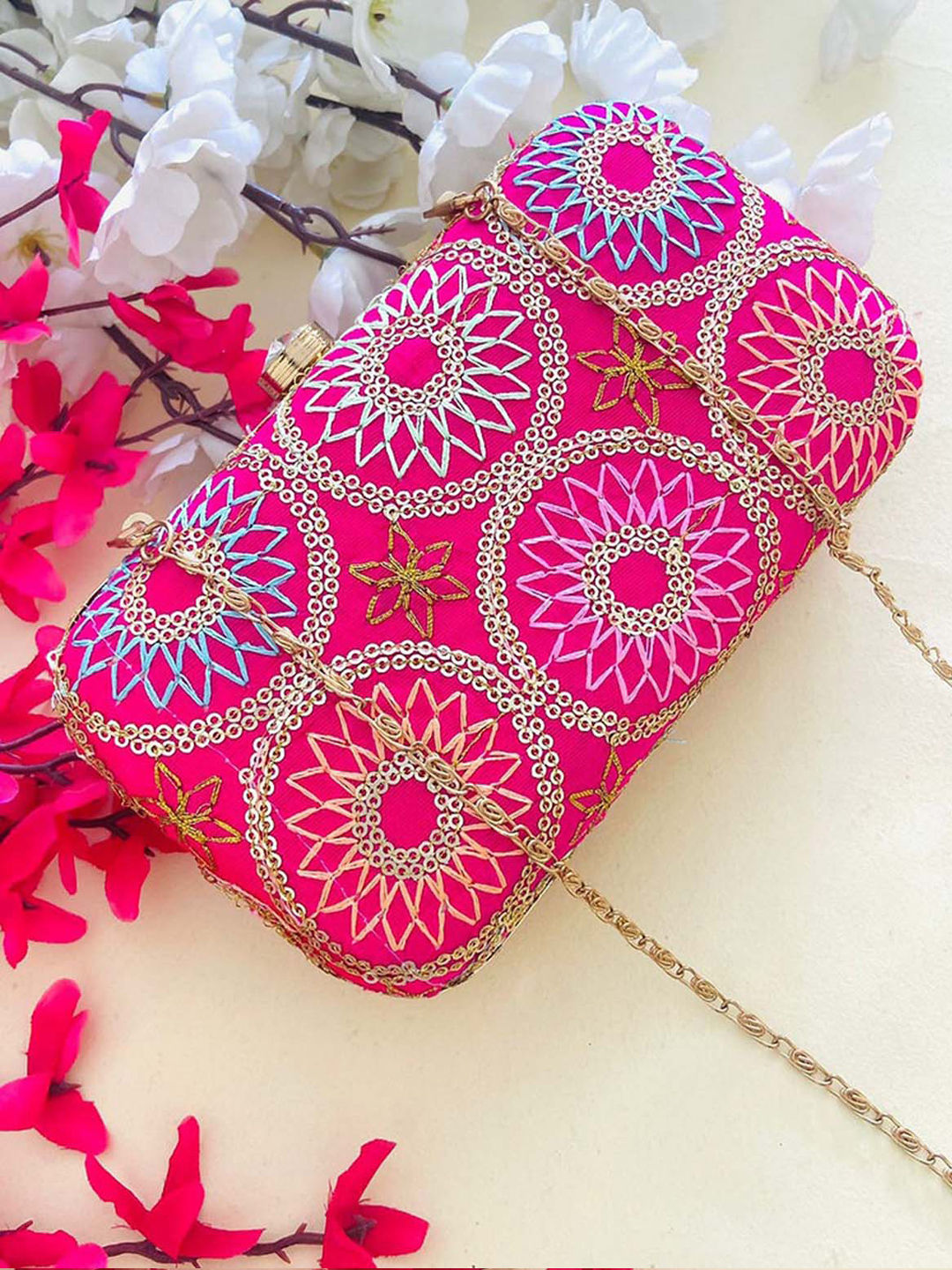 Pink and Majenta color Clutches in Art Silk fabric with Embroidered work
