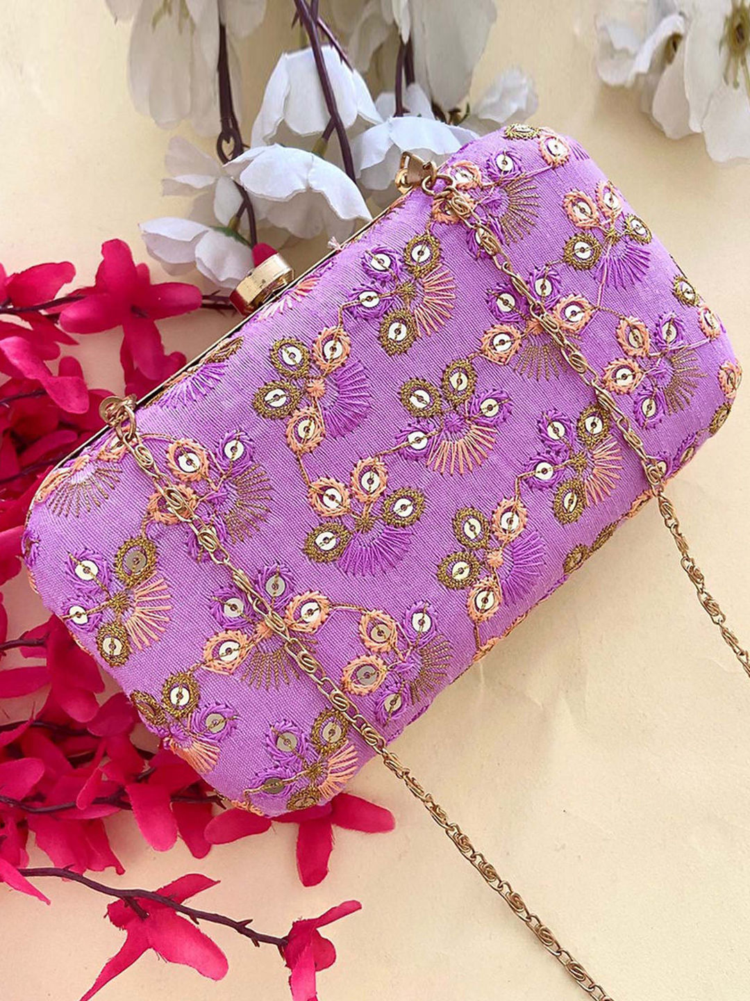 Fancy Fabric Festive Clutches in Purple and Violet with Sequence work