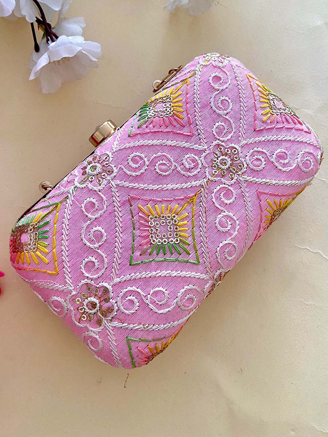 Pink and Majenta color Clutches in Art Silk fabric with Embroidered work