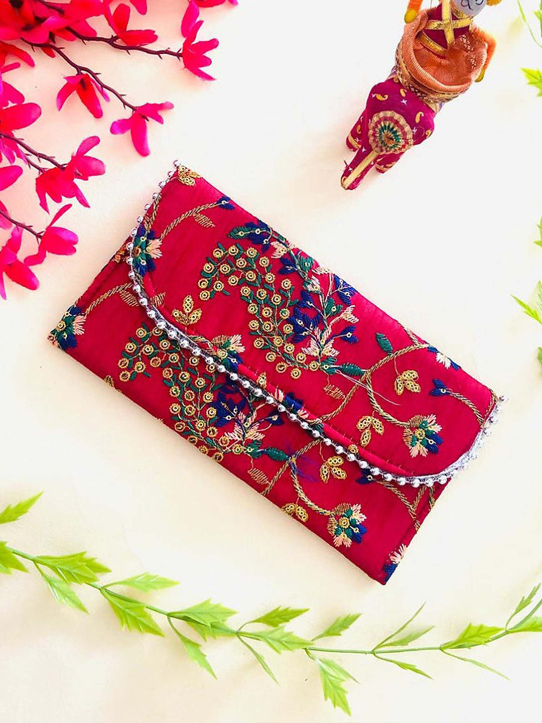 Red and Maroon color Clutches in Art Silk fabric with Embroidered work