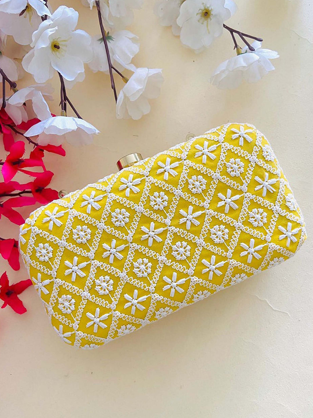 Yellow color Clutches in Art Silk fabric with Embroidered work