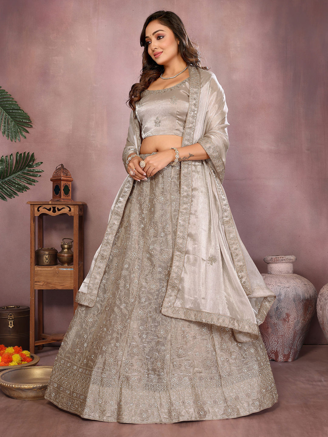 Black and Grey color Lehenga in Art Silk fabric with Embroidered, Sequence, Zari work