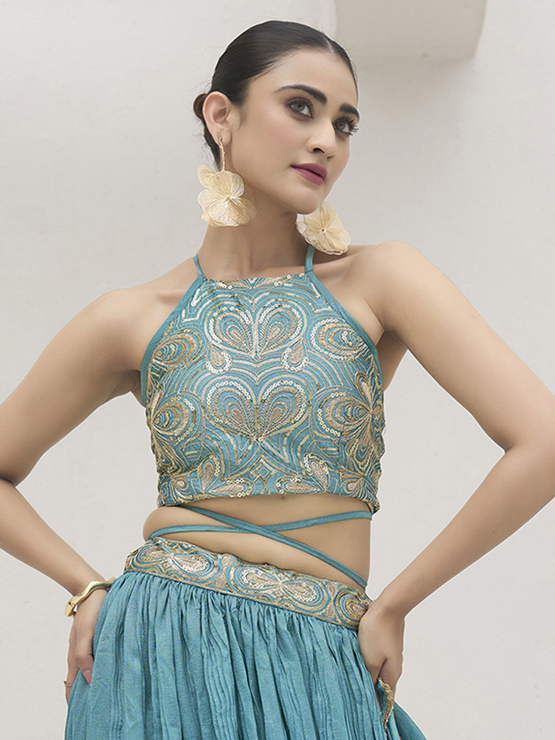 Blue color Lehenga in Art Silk fabric with Sequence work