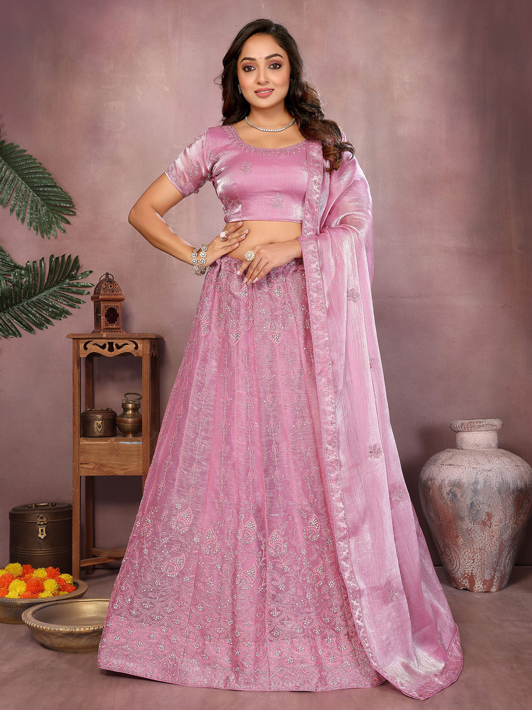 Pink and Majenta color Lehenga in Art Silk fabric with Embroidered, Sequence, Zari work