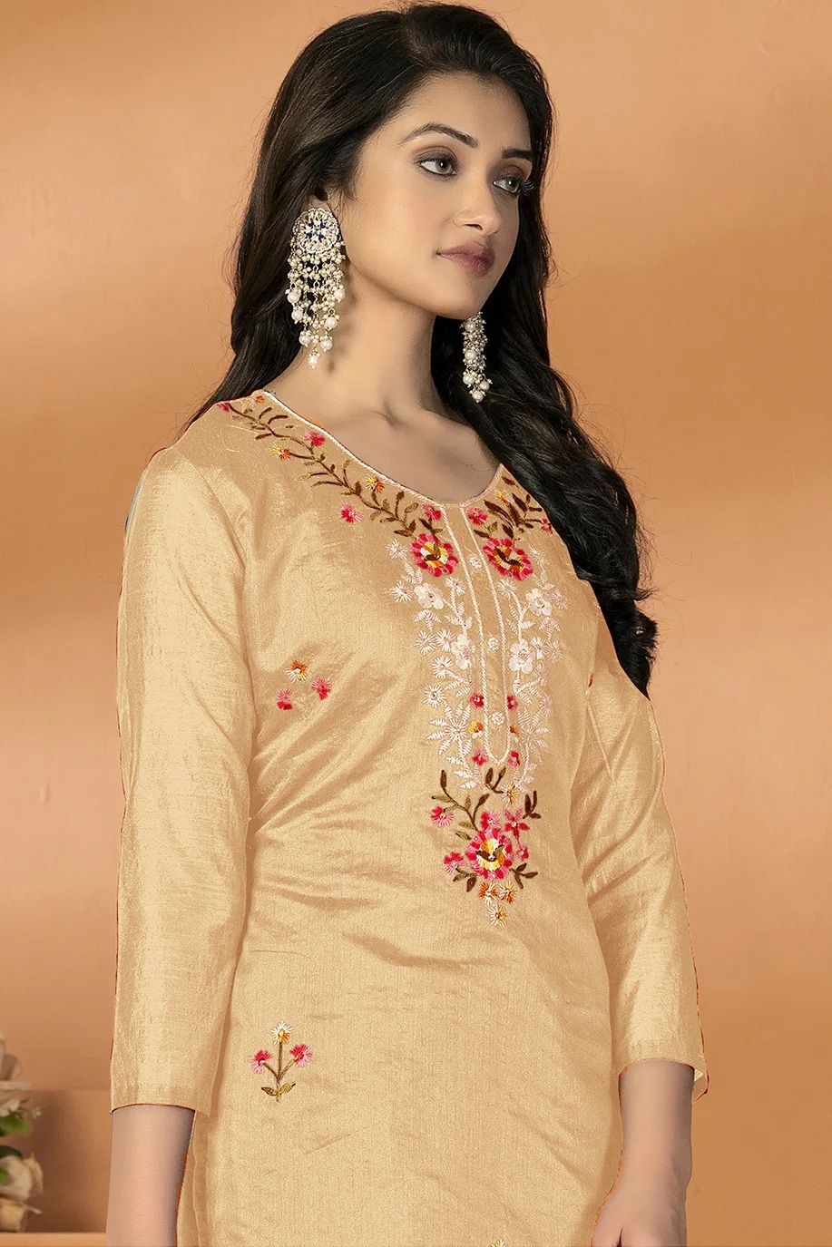 in Beige and Brown with Embroidered work