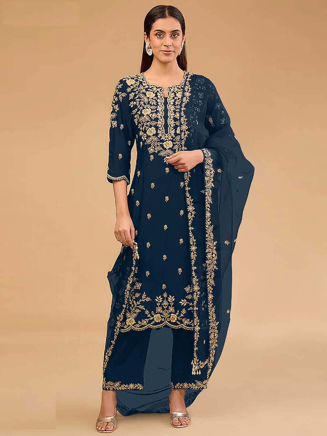 Blue color Salwar Kameez in Art Silk fabric with Embroidered, Thread work