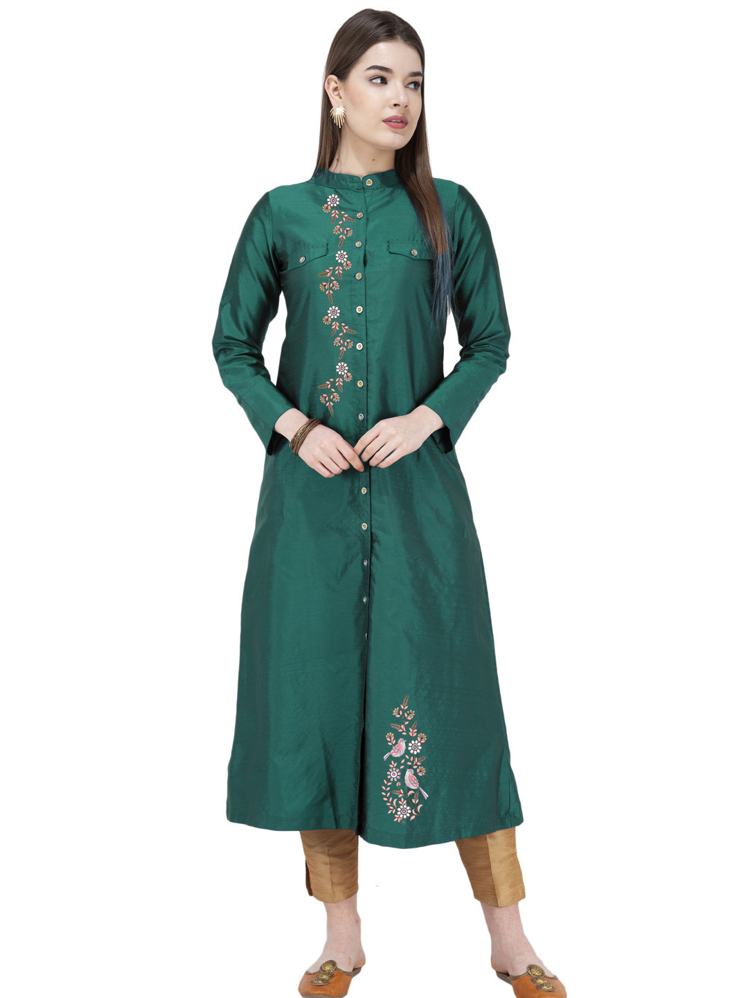 Green color Salwar Kameez in Art Silk fabric with Embroidered work