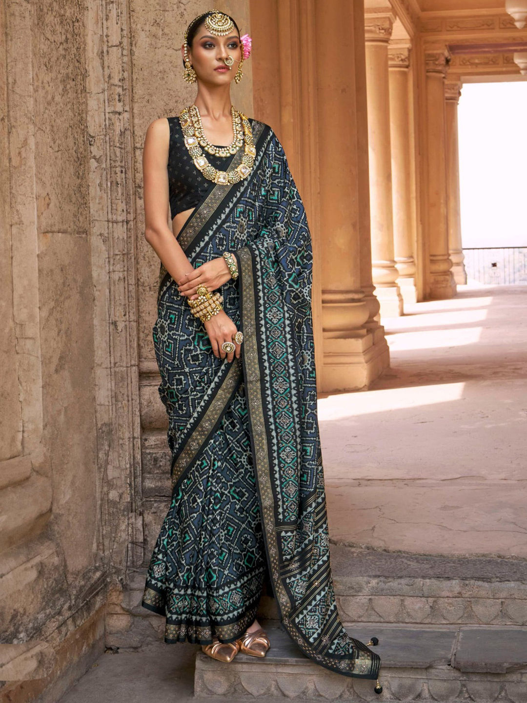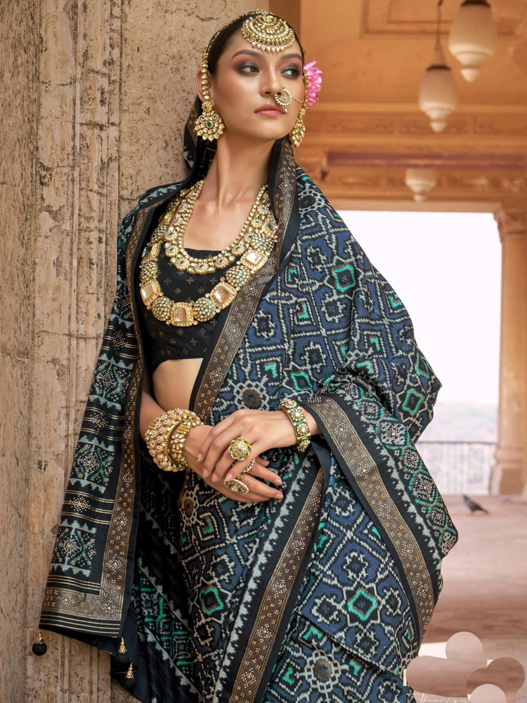 Black and Grey color Saree in Art Silk fabric with Printed work