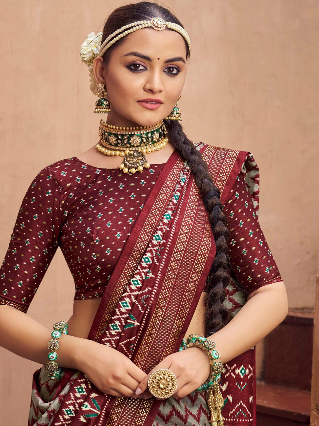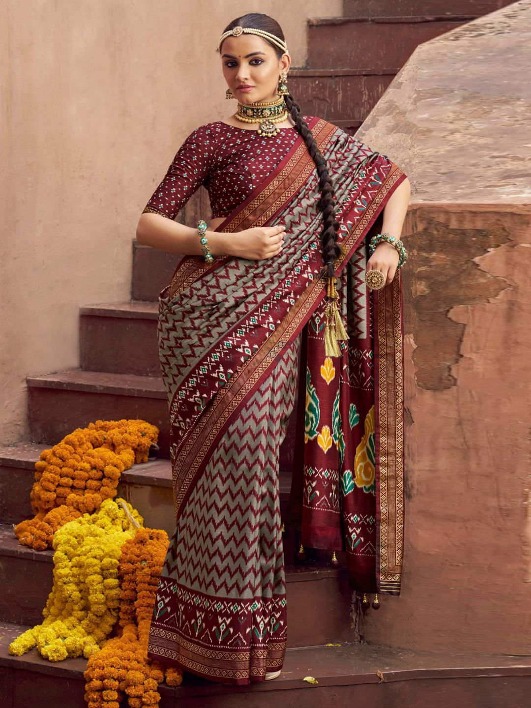 Black and Grey, Red and Maroon color Saree in Art Silk fabric with Printed, Weaving work