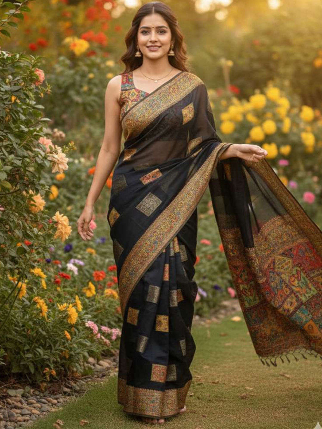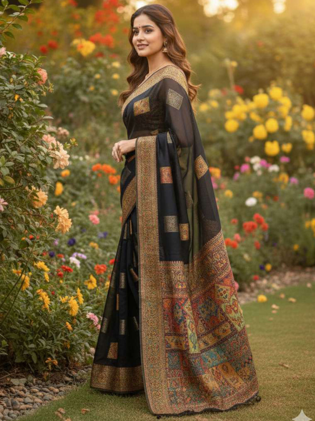 Art Silk Festive Saree in Black and Grey with Weaving work