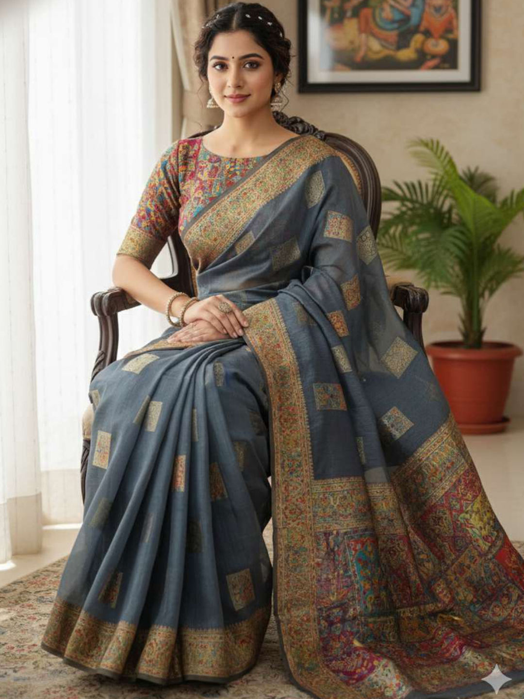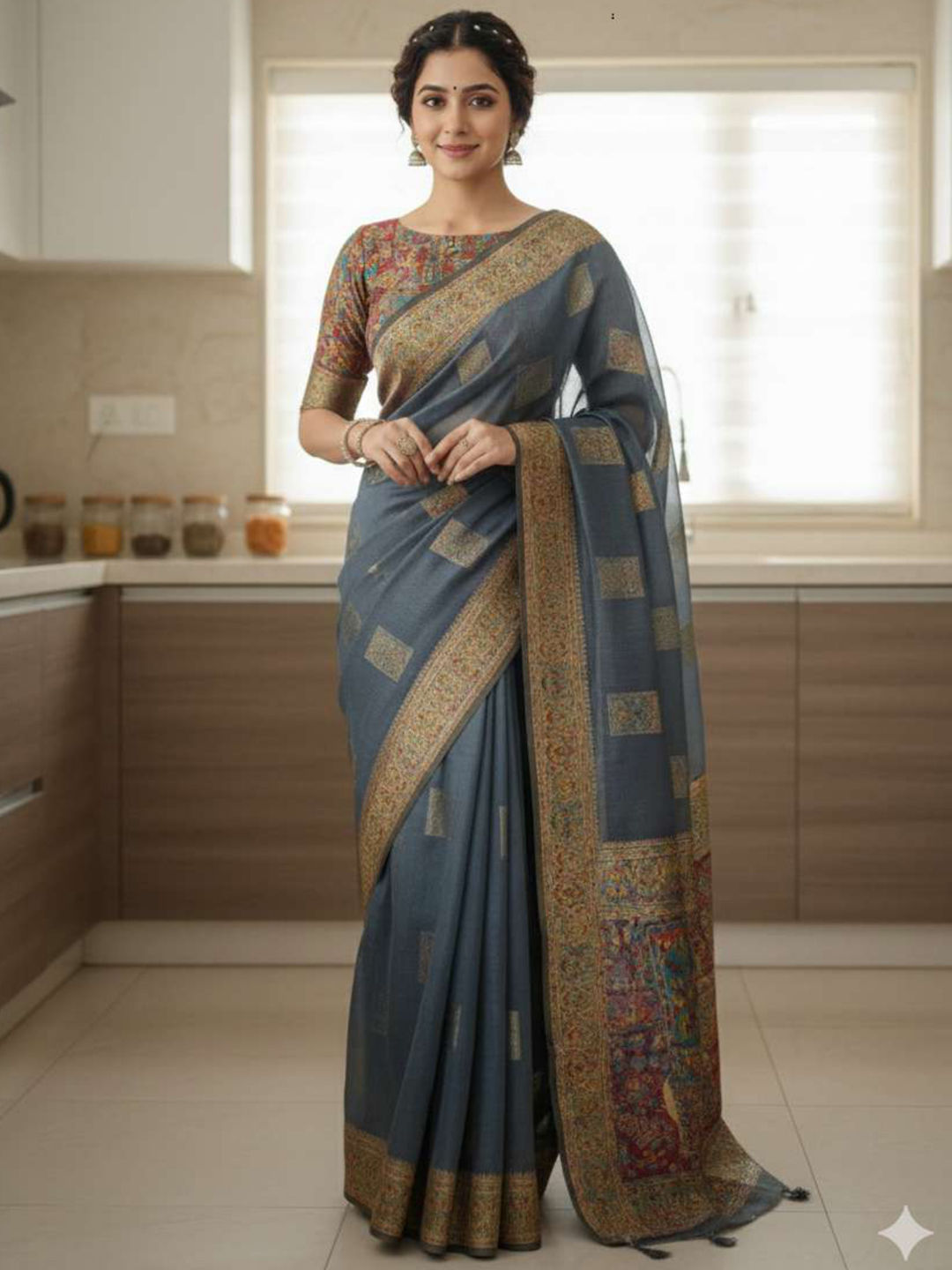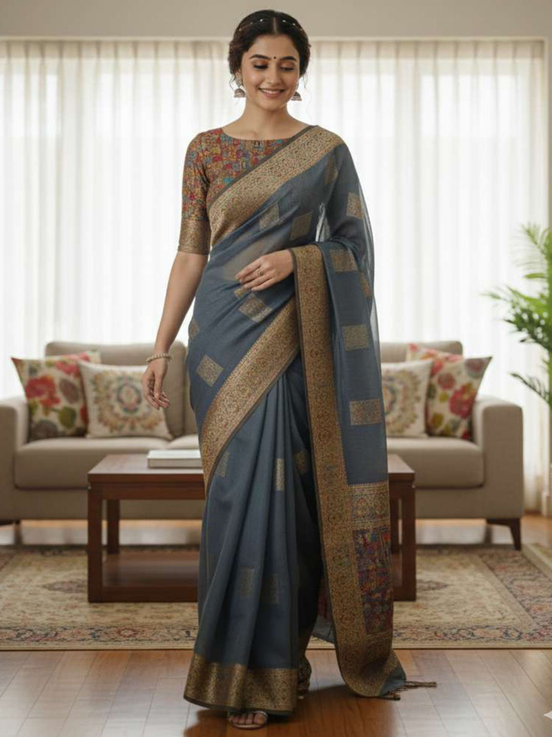 Art Silk Festive Saree in Black and Grey with Weaving work