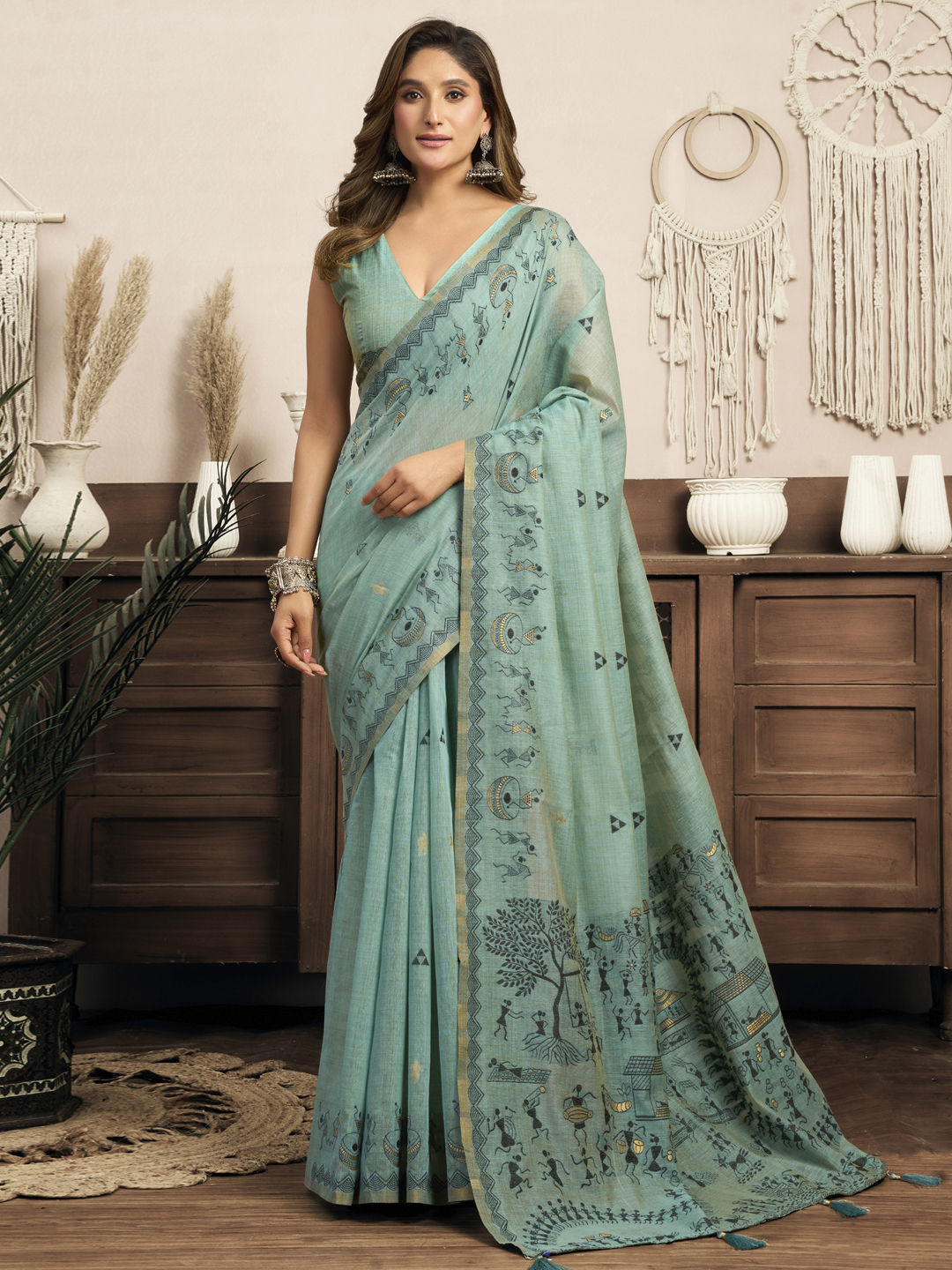Art Silk Festive Saree in Beige and Brown with Printed work
