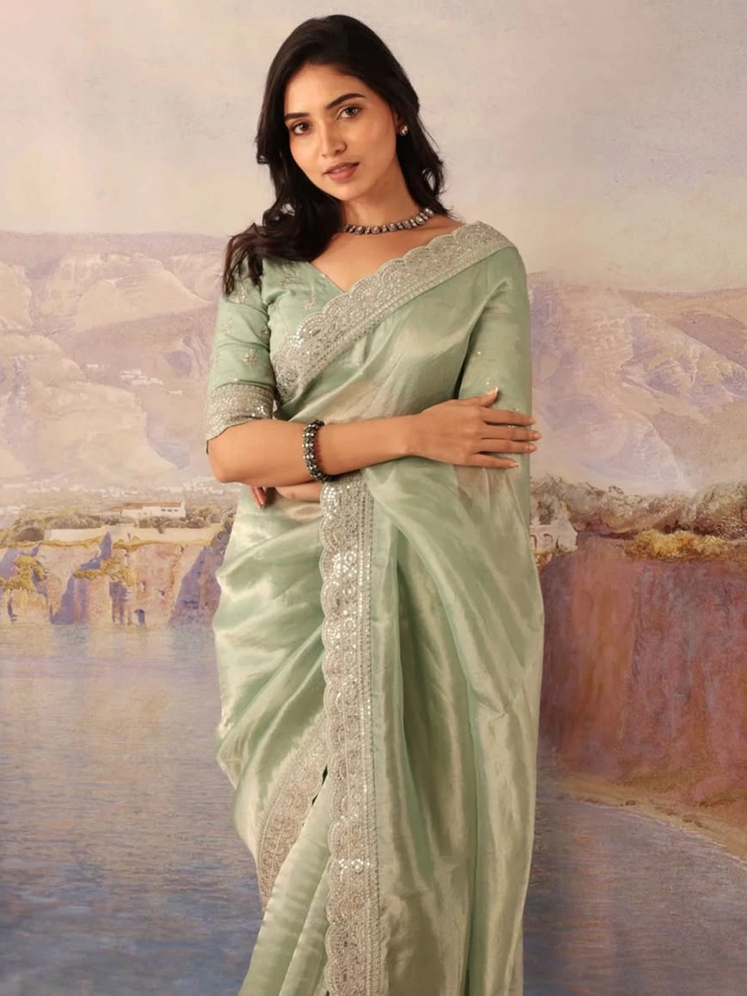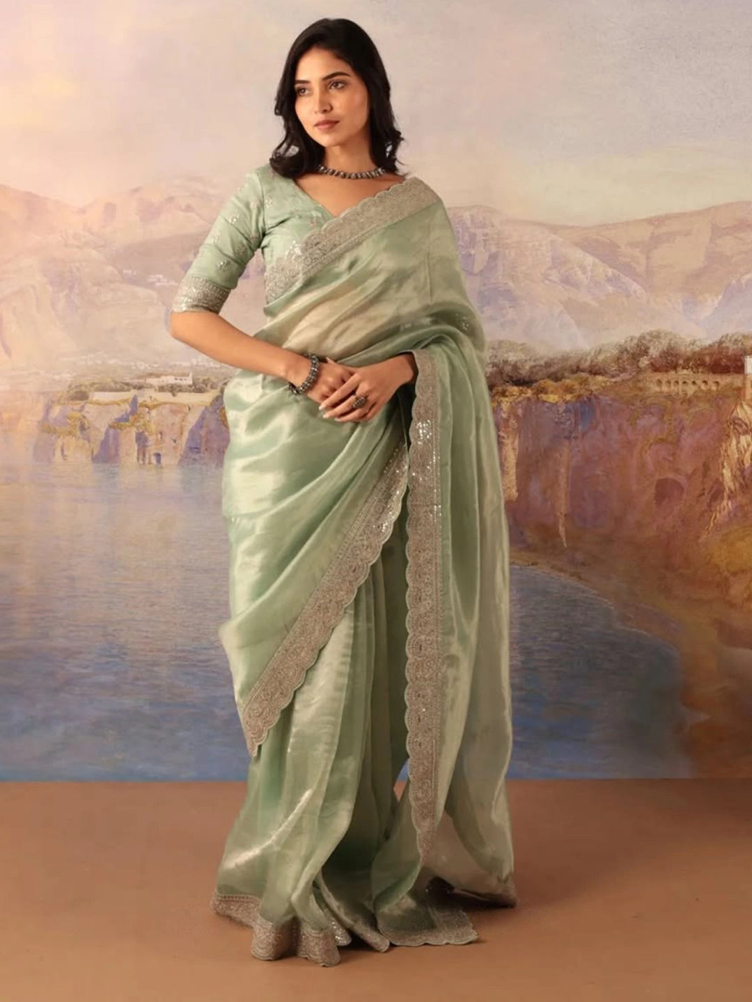 in Green with Embroidered work