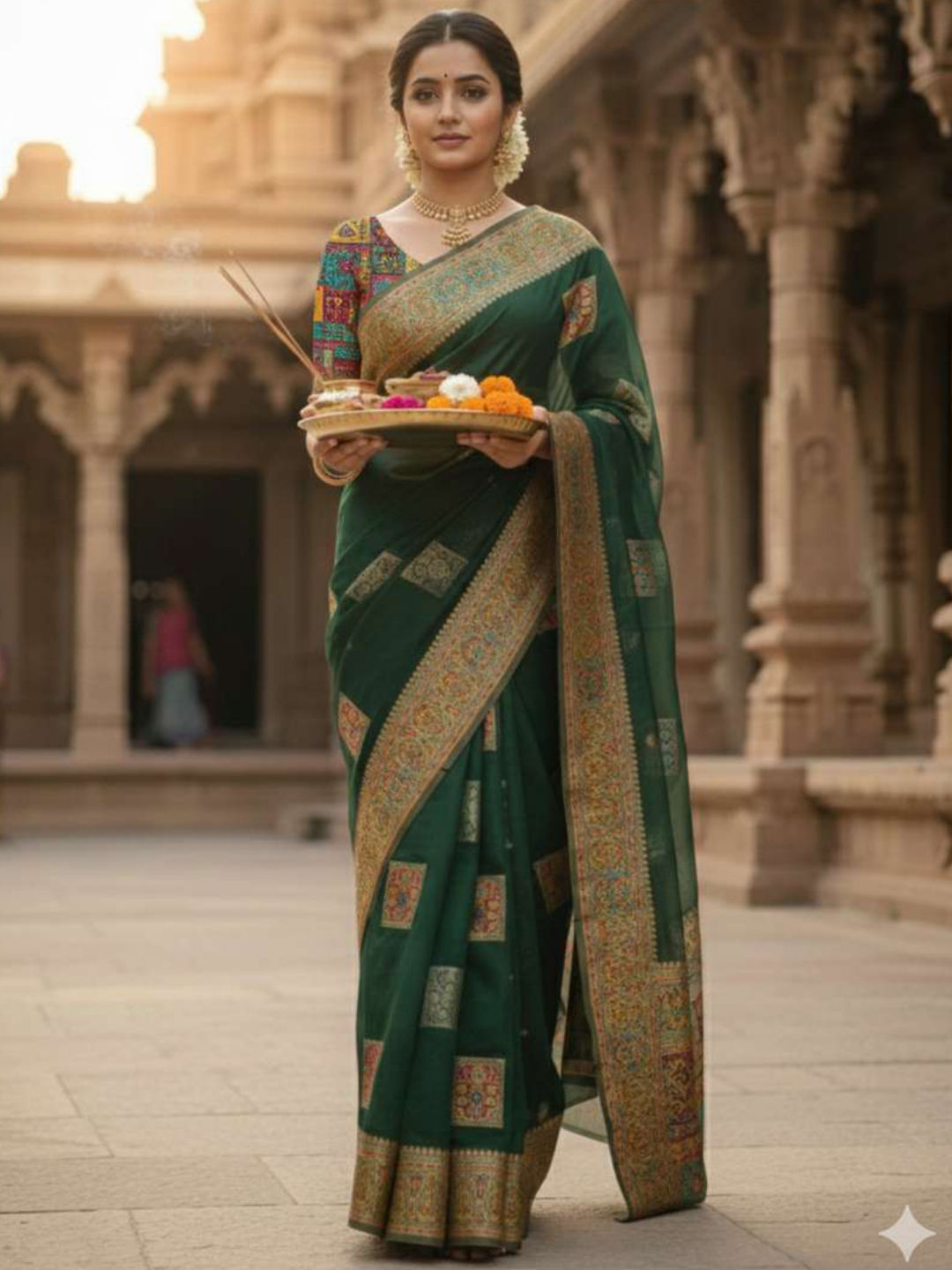 in Green with Weaving work