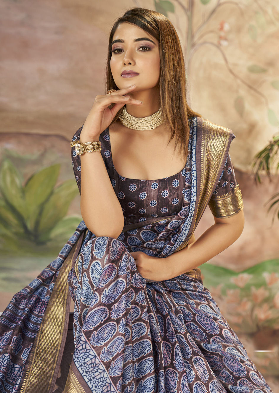 Art Silk Traditional Saree in Black and Grey with Weaving work