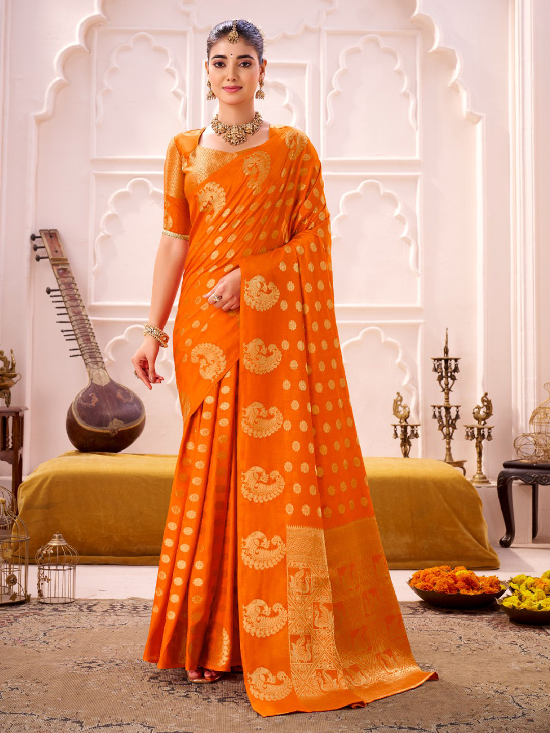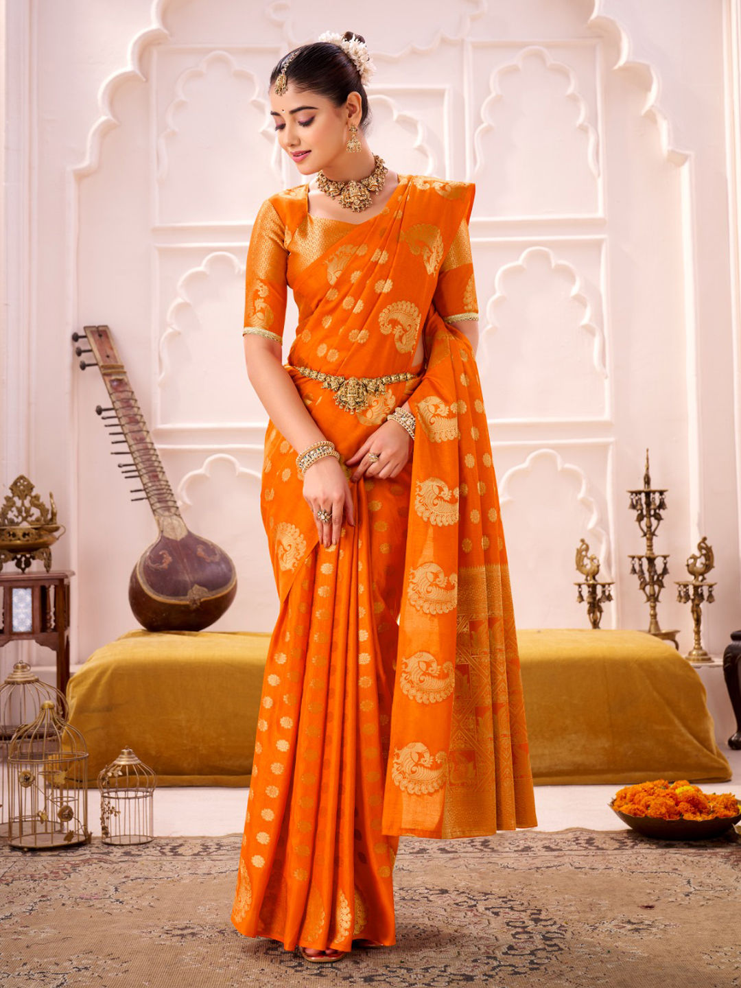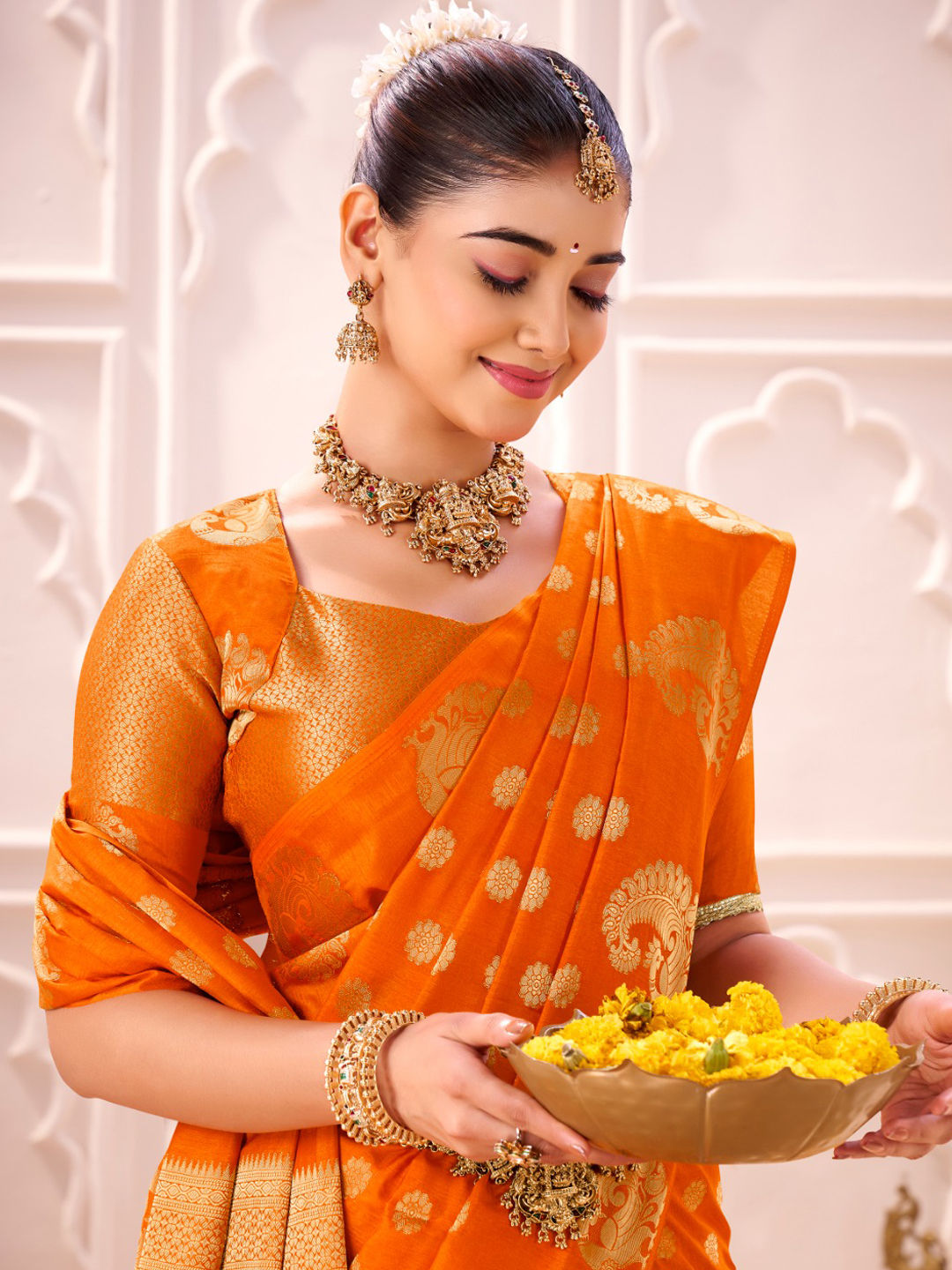 Orange color Saree in Art Silk fabric with Weaving, Zari work