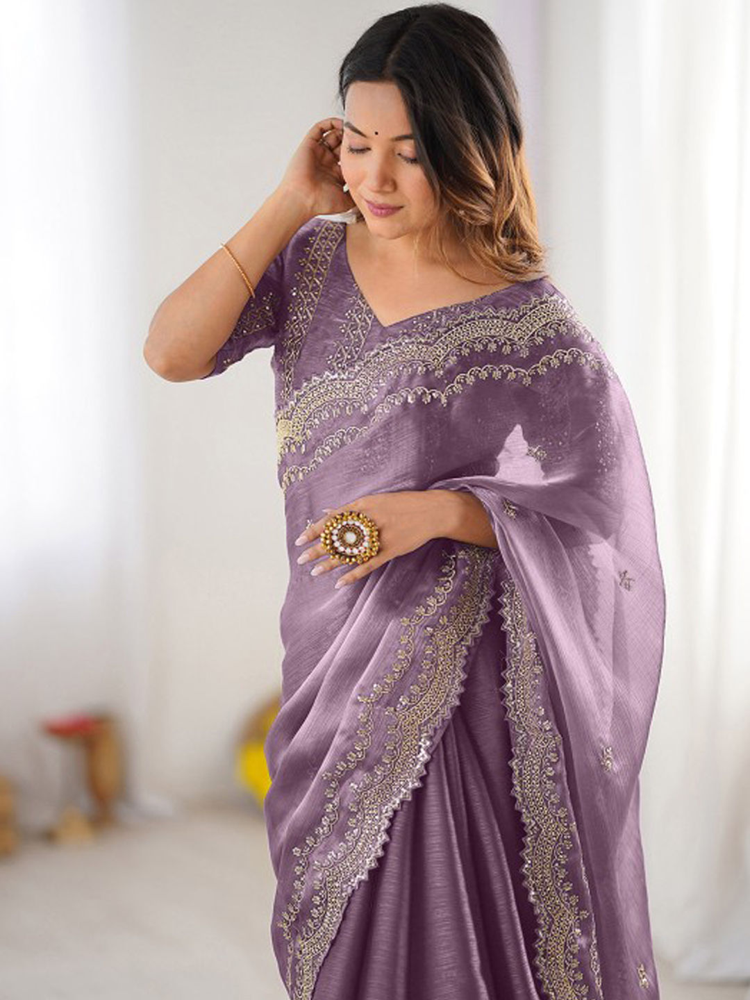 Chinon Silk Reception Saree in Pink and Majenta with Embroidered work