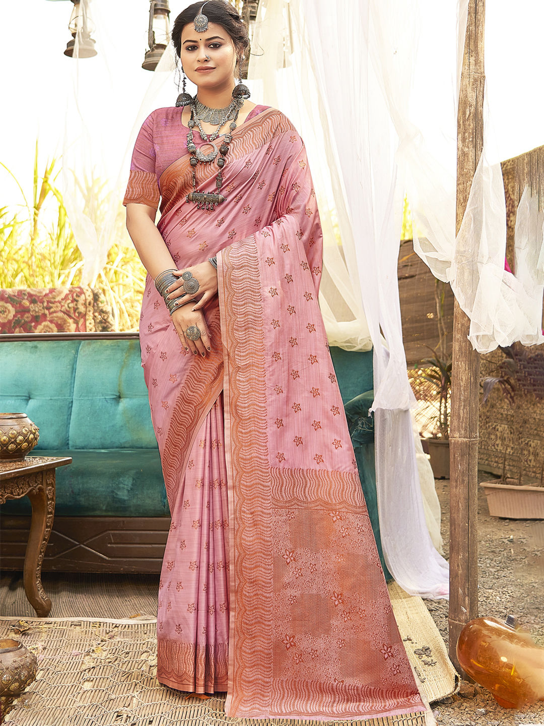 Pink and Majenta color Saree in Art Silk fabric with Weaving work