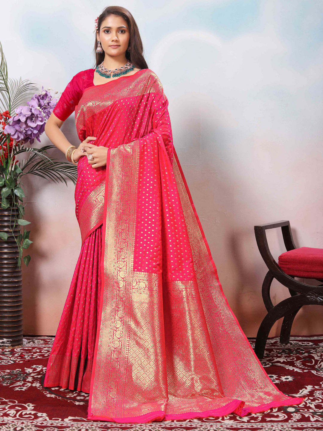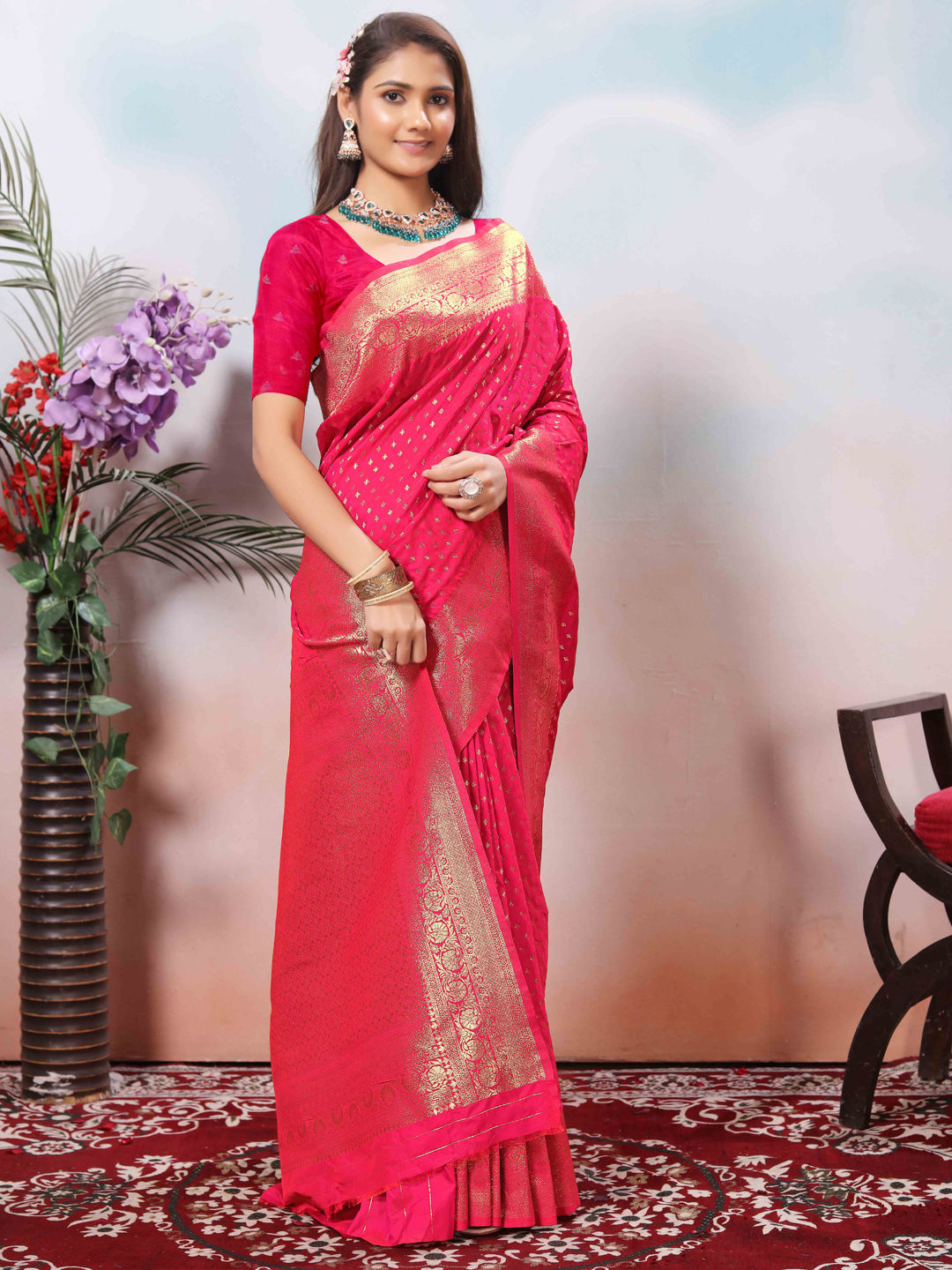 in Pink and Majenta with Weaving work