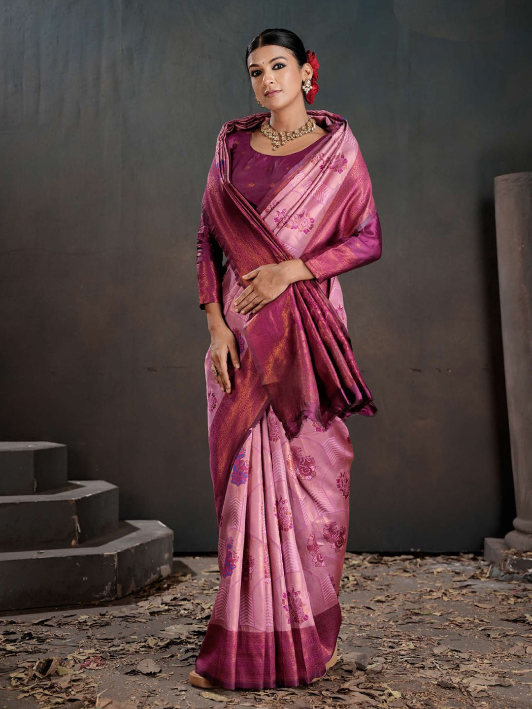 Pink and Majenta color Saree in Art Silk fabric with Weaving work