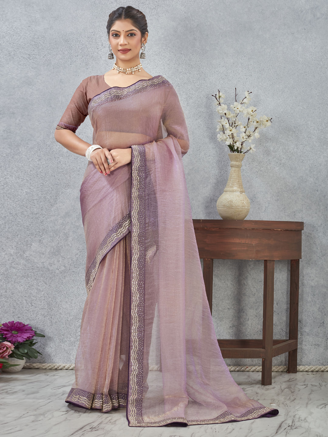 Purple and Violet color Saree in Art Silk fabric with Border, Zircon work