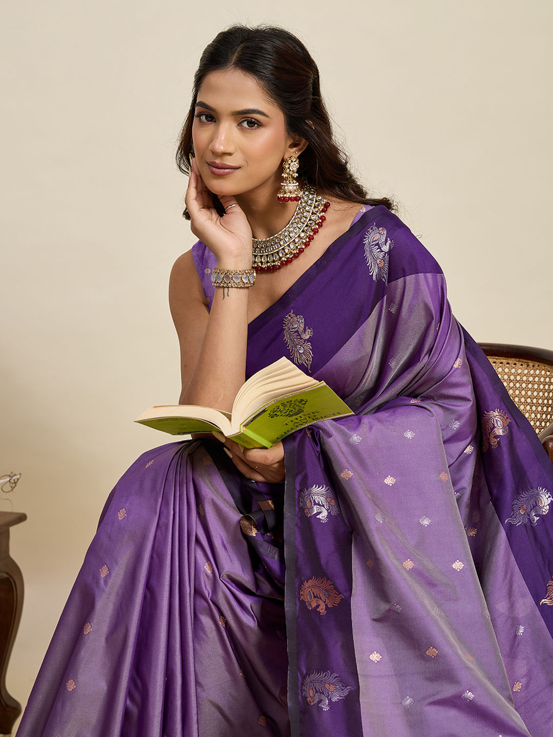 Purple and Violet color Saree in Art Silk fabric with Weaving, Zari work