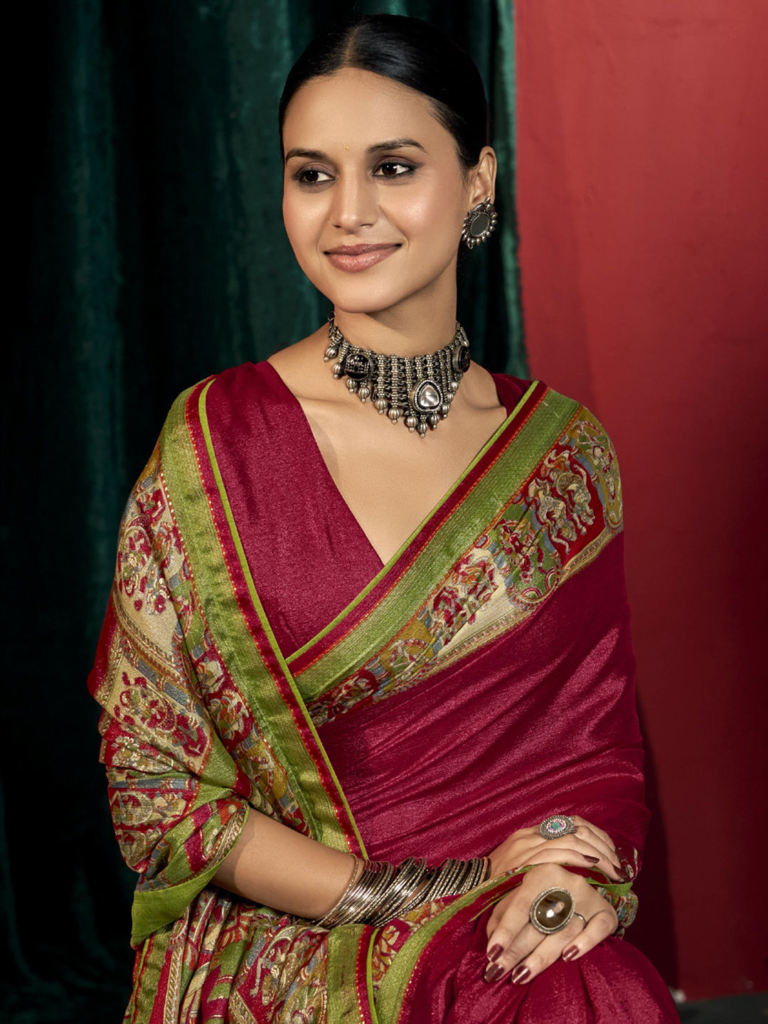 Art Silk Traditional Saree in Red and Maroon with Printed work